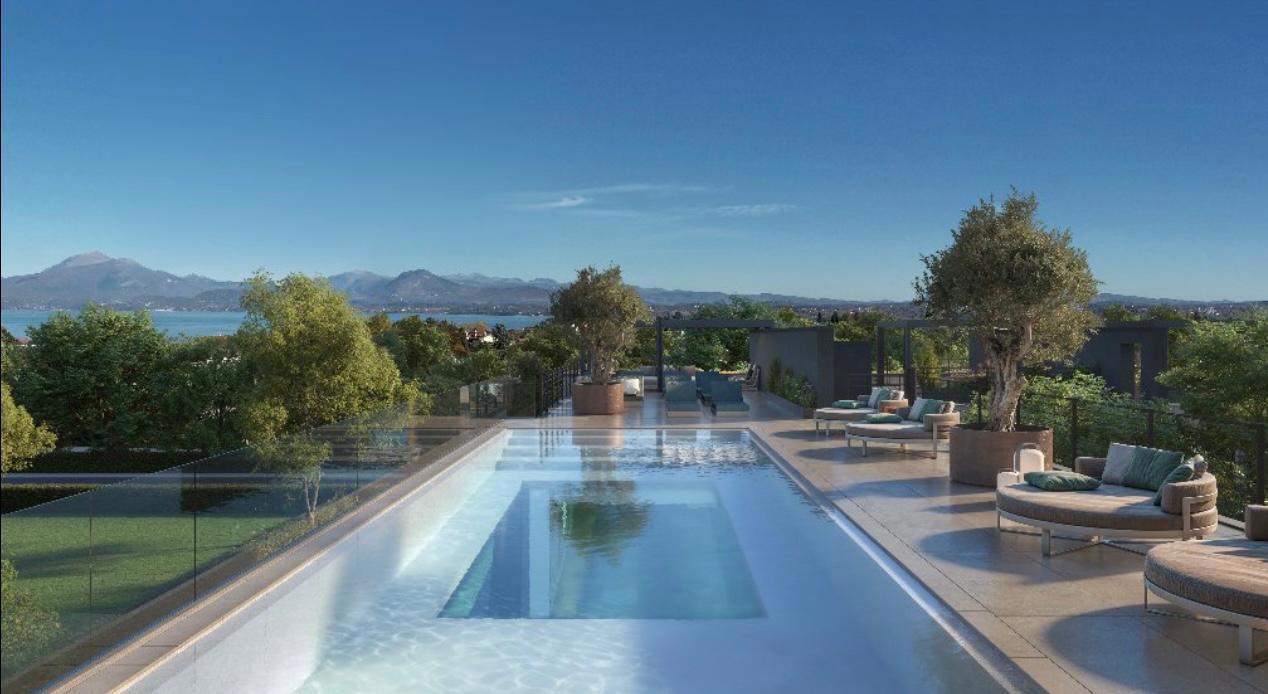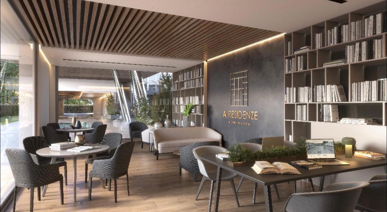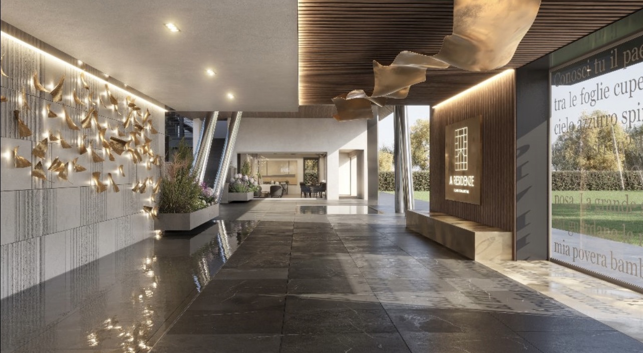 "A Residenze" accoglie i privilegiati ospiti con una galleria di ingresso molto elegante e dispone di spazi collettivi ad uso esclusivo: piscina sospesa con fondo trasparente e con vista lago, Agor interna con Area Lounge e biblioteca, palestra e fitness area, locale e-bike, lavanderia.