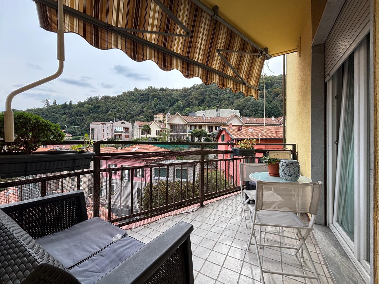 L'appartamento è cosi composto: Ingresso accogliente Soggiorno di generose dimensioni con accesso al balcone Cucina separata e abitabile con balcone dedicato e caldaia autonoma in vano murato Due camere da letto, entrambe con affaccio sui balconi Bagno principale finestrato Bagno di servizio con lavatrice e asciugatrice Lappartamento, esposto su tre lati (Est Sud Ovest), gode di tre balconi, uno dei quali con vista lago. È dotato di finiture moderne e funzionali: infissi in PVC con doppi vetri e apertura vasistas, porta blindata, impianto di climatizzazione con controllo da remoto via Wi-Fi. L'immobile è completato dalle seguenti pertinenze: Box singolo in autorimessa, con accesso diretto al vano scala e carraio automatizzato Solaio al piano sottotetto La soluzione si presta perfettamente anche a chi lavora in Svizzera, grazie alla vicinanza con i principali collegamenti.
