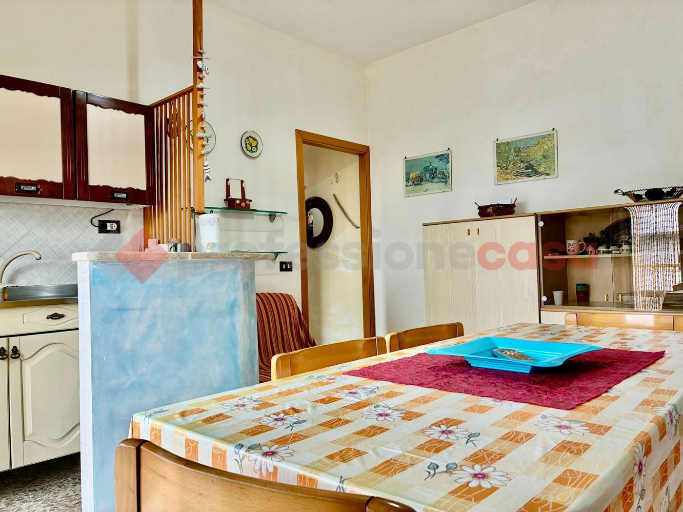 Marina di Ardea - appartamento sul Lungomare degli Ardeatini al 1° piano S/A: soggiorno con angolo cottura, disimpegno, camera, cameretta e bagno.