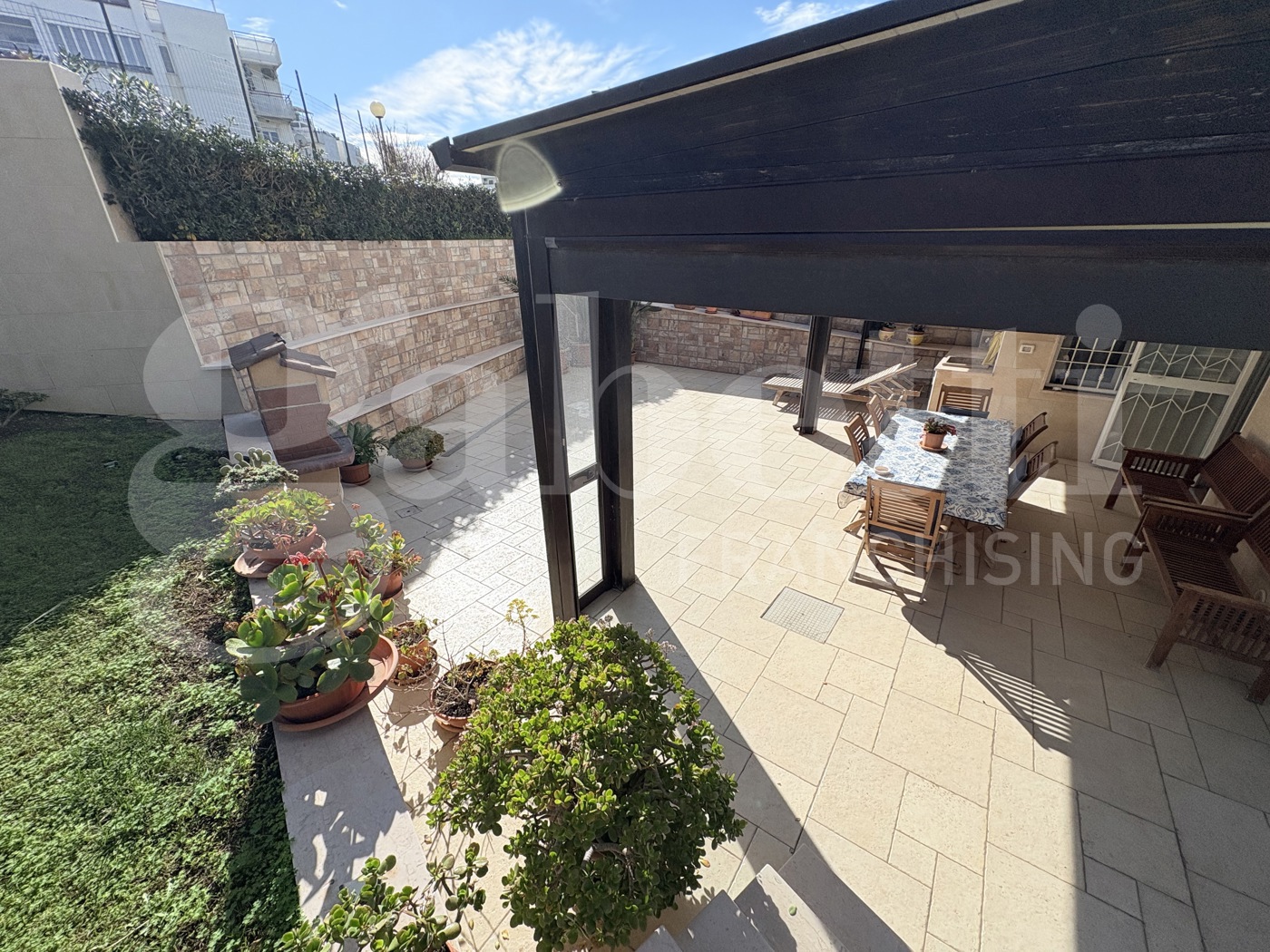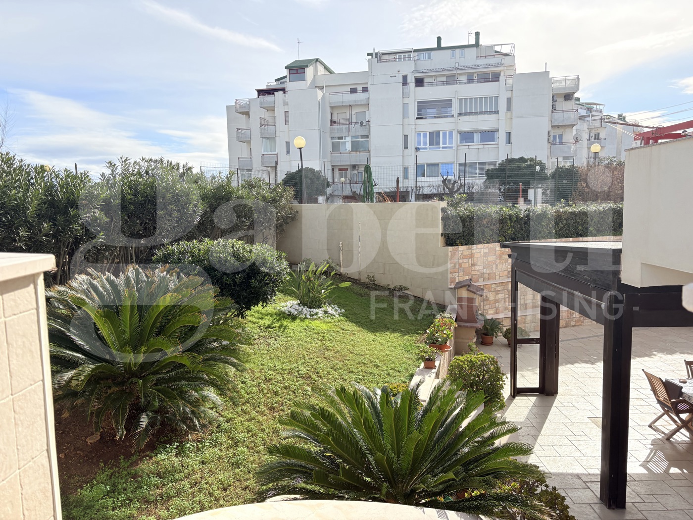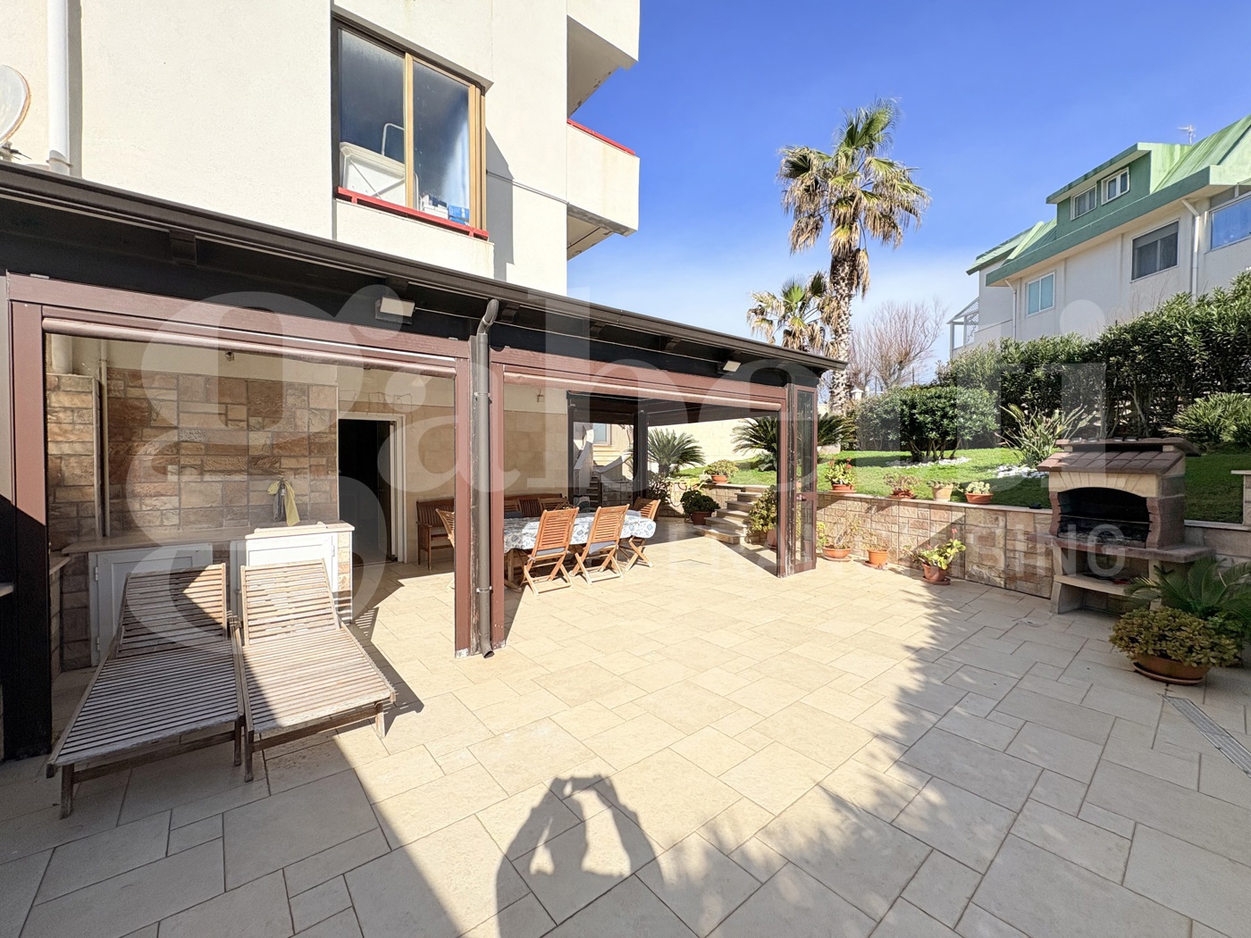 LIBERO DA MARZO 2027 All'interno del condominio di PARCO ATLANTIDE, a pochi metri dal mare, meraviglioso appartamento in ottime condizioni, con vista mare, giardino di pertinenza e parcheggio auto. Si accede da un cancello privato e si presentano alla vista, un giardino estremamente curato e parzialmente pavimentato, ed un patio coperto con struttura in legno, alloccorrenza richiudibile.