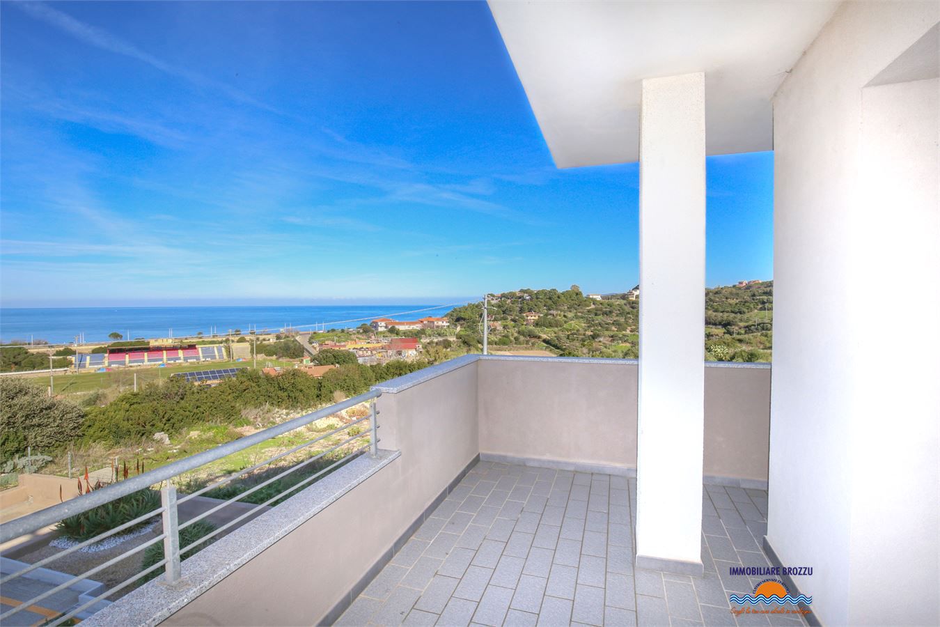 \nVendiamo meraviglioso TRILOCALE di ANNO di COSTRUZIONE 2016 con ingresso indipendente con esclusiva vista mare. \nL'intera struttura si compone di sole 12 unità immobiliari.\nL'immobile è un PIANO PRIMO di 50 mq più la terrazza di mq 16 composto da:\n-Zona giorno luminosa dove si accede ha un terrazza di 16 mq rigorosamente vista mare dove ci si può rilassare comodamente dopo un intensa giornata di mare e mangiare in totale tranquillità all'aria aperta, \n-Angolo cottura\n-Camera da letto\n-Seconda piccola cameretta \n-Bagno finestrato\n-Tre lati liberi e terrazzo tutto intorno al proprio immobile\n-Patio esterno di mq 56 di proprietà esclusiva dotato di barbecue\n \nL'ottima esposizione del complesso permette a questo immobile una luminosità costante durante tutte le fasi del giorno, caratteristica fondamentale per vivere la casa.\n\nOgni ambiente è dotato di impianto nuovo con sistema a pompa di calore (caldo/freddo).\n\nL'immobile viene venduto compreso di arredamento ed elettrodomestici esistenti tutto NUOVO ANNO 2016 cosi come da foto per cui abitabile fin da subito.\n\nL'immobile è dotato di un posto auto scoperto di proprietà esclusiva dove è possibile lasciare la propria auto. \n\nInfissi esterni finestre e porte finestre in PVC con doppio vetro camera ad alto isolamento termico di colore bianco; persiane con alette orientabile in alluminio colore bianco.