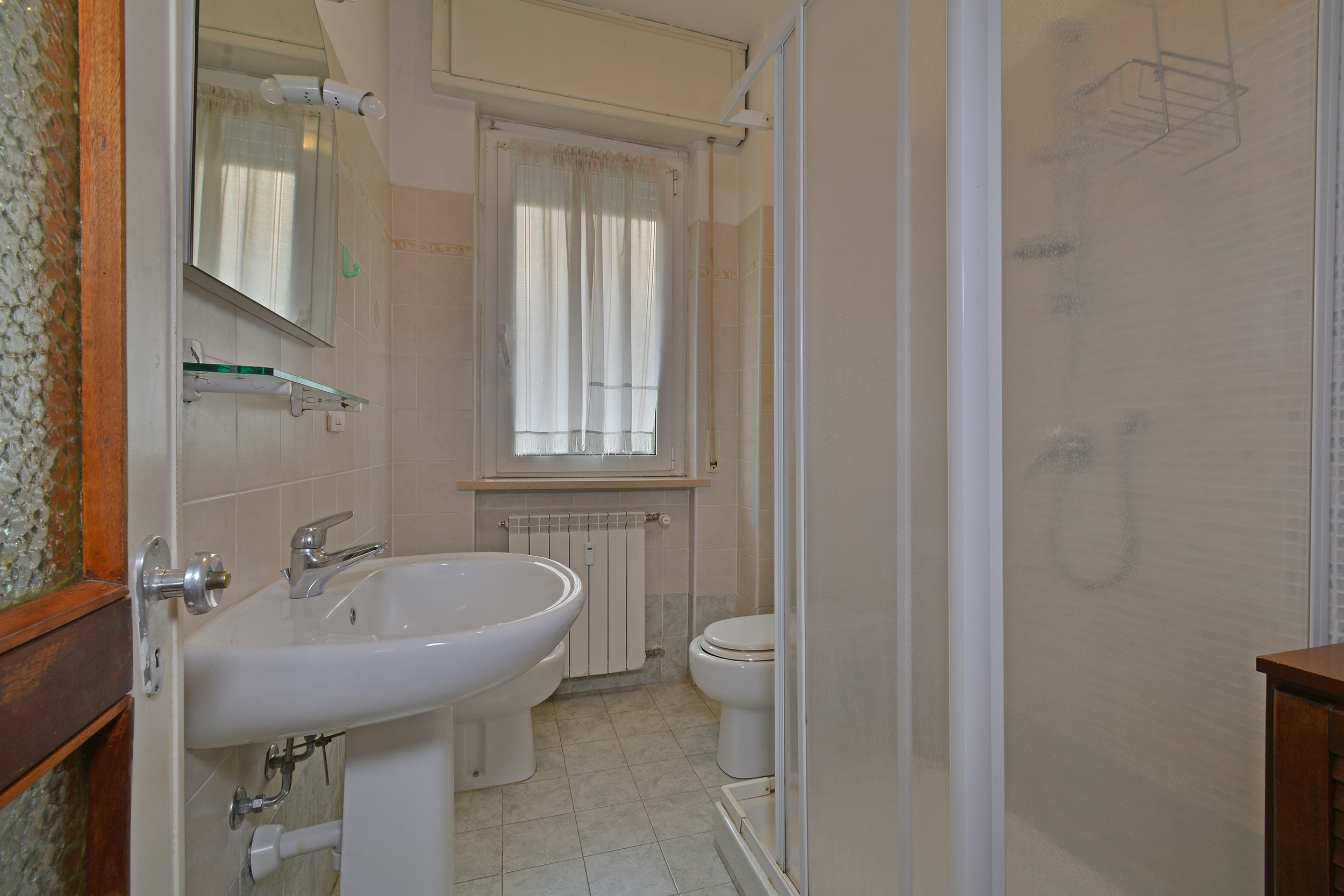 Il bagno, completo di doccia e finestra, è funzionale e ben progettato.