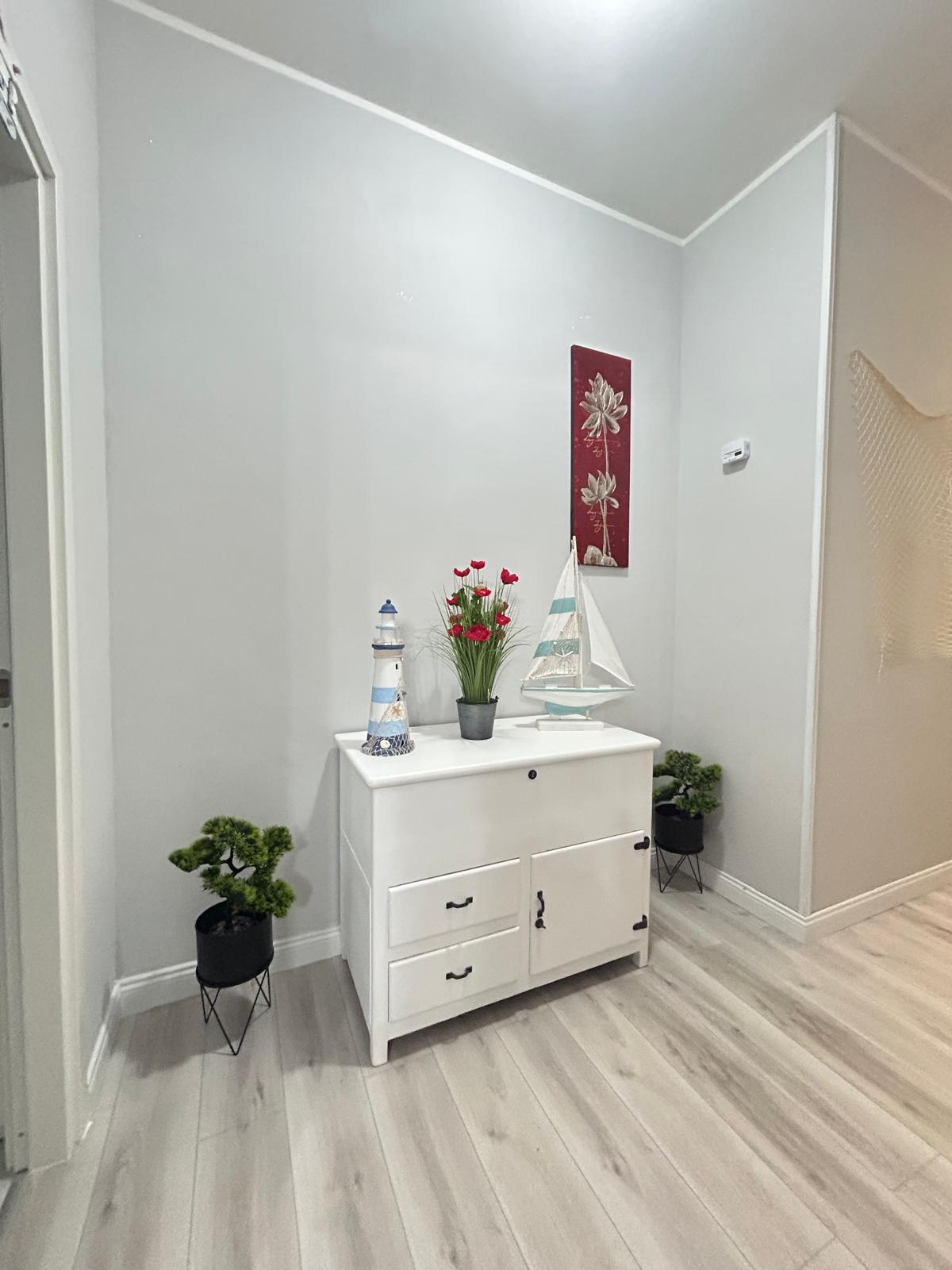 L'immobile è composto da: ingresso, luminoso soggiorno, cucinotto, disimpegno, due camere matrimoniali e servizio con doccia.