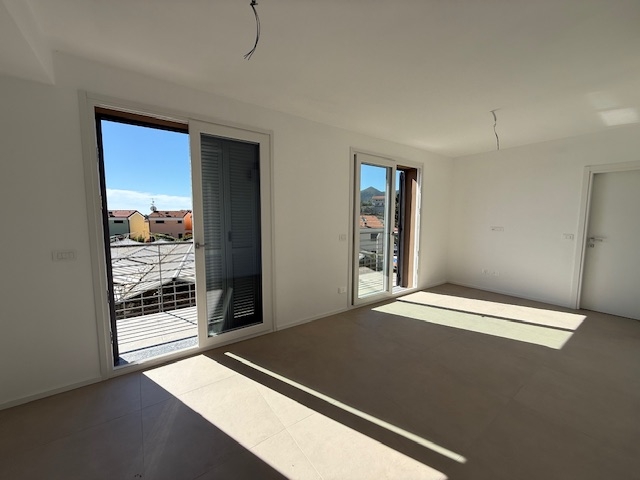 Lappartamento, realizzato con finiture di pregio e in Classe Energetica A4, è composto da: Ingresso su ampio soggiorno con angolo cottura e accesso diretto al grande terrazzo vista mare, Disimpegno, Due camere matrimoniali con balcone, Bagno finestrato, Posto auto privato chiuso da cancello elettrico.