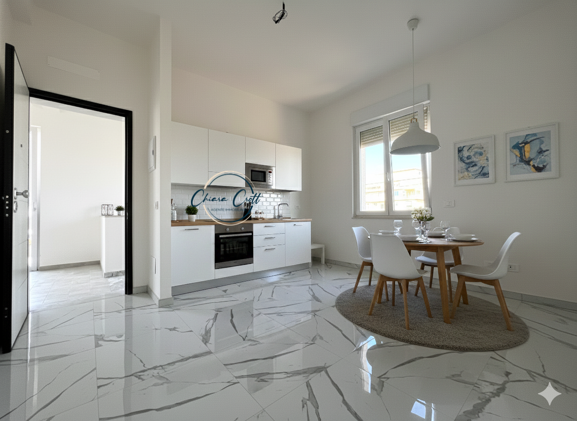 L'immobile, caratterizzato da ambienti luminosi e moderni, si compone di soggiorno/pranzo, ampia camera matrimoniale con vista mare, bagno con doccia e finestra e una camerina/studio che può anche trasformarsi in cucina (già predisposta). L'arredamento presente nelle foto e stato creato con AI. Punti di forza: Ristrutturazione completa: Tutta la casa, incluso il vano scala, è stata rifinita con materiali di alta qualità e si trova in classe A2. Vista mare: Ammira il panorama dalla tua camera matrimoniale.