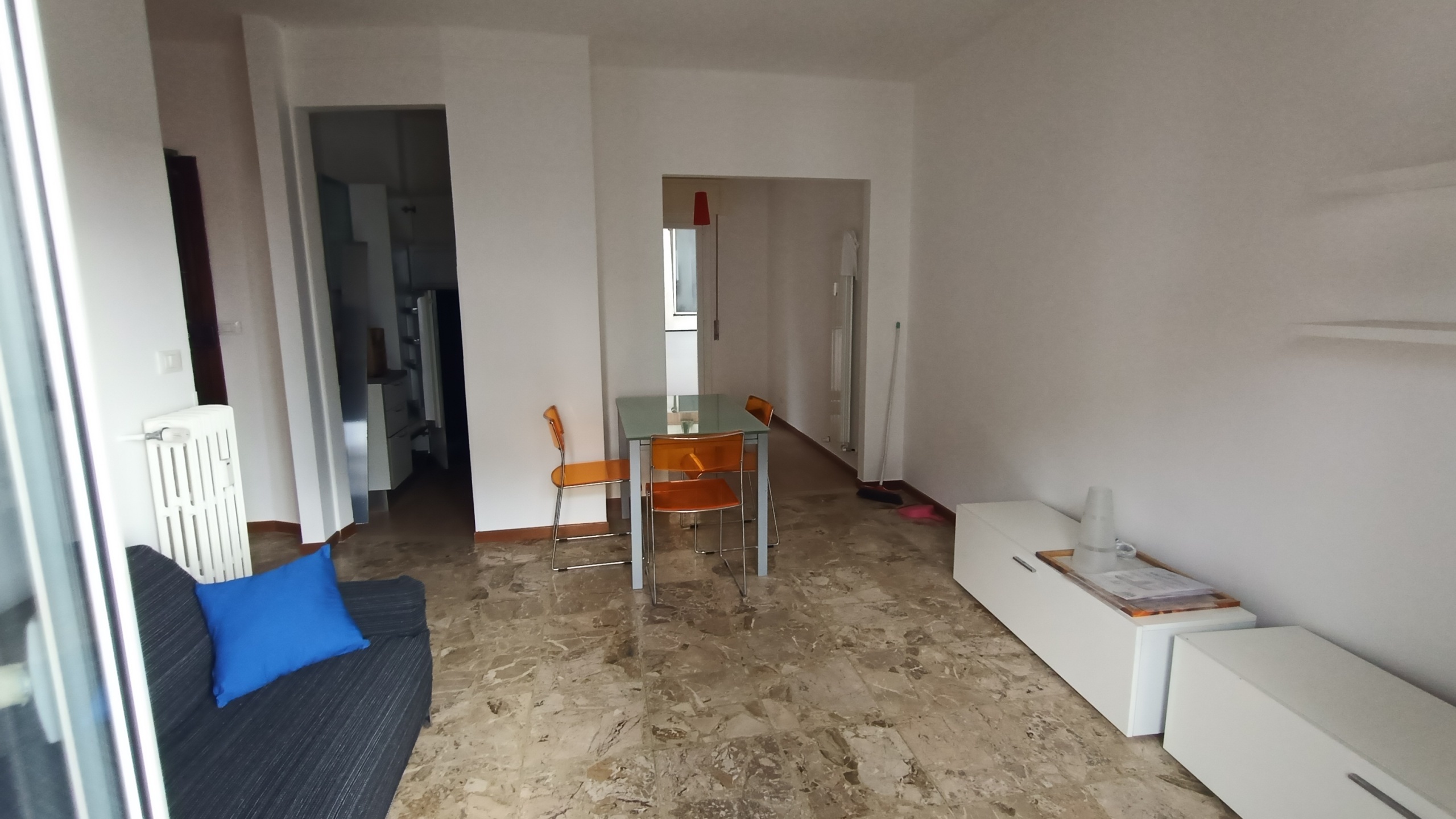 L'appartamento si compone di un soggiorno con vista e porta finestra, la cucina separta con un balcone di servizio, un grande ripostiglio, bagno con finestra ristrutturato 10 anni fà, generosa camera matrimoniale con porta finestra e pavimento parquet, grande terrazza perimetrale sul lato mare. Riscaldamento centralizzato con termovalvole e contaore, per un uso personalizzato, serrramenti nuovi.