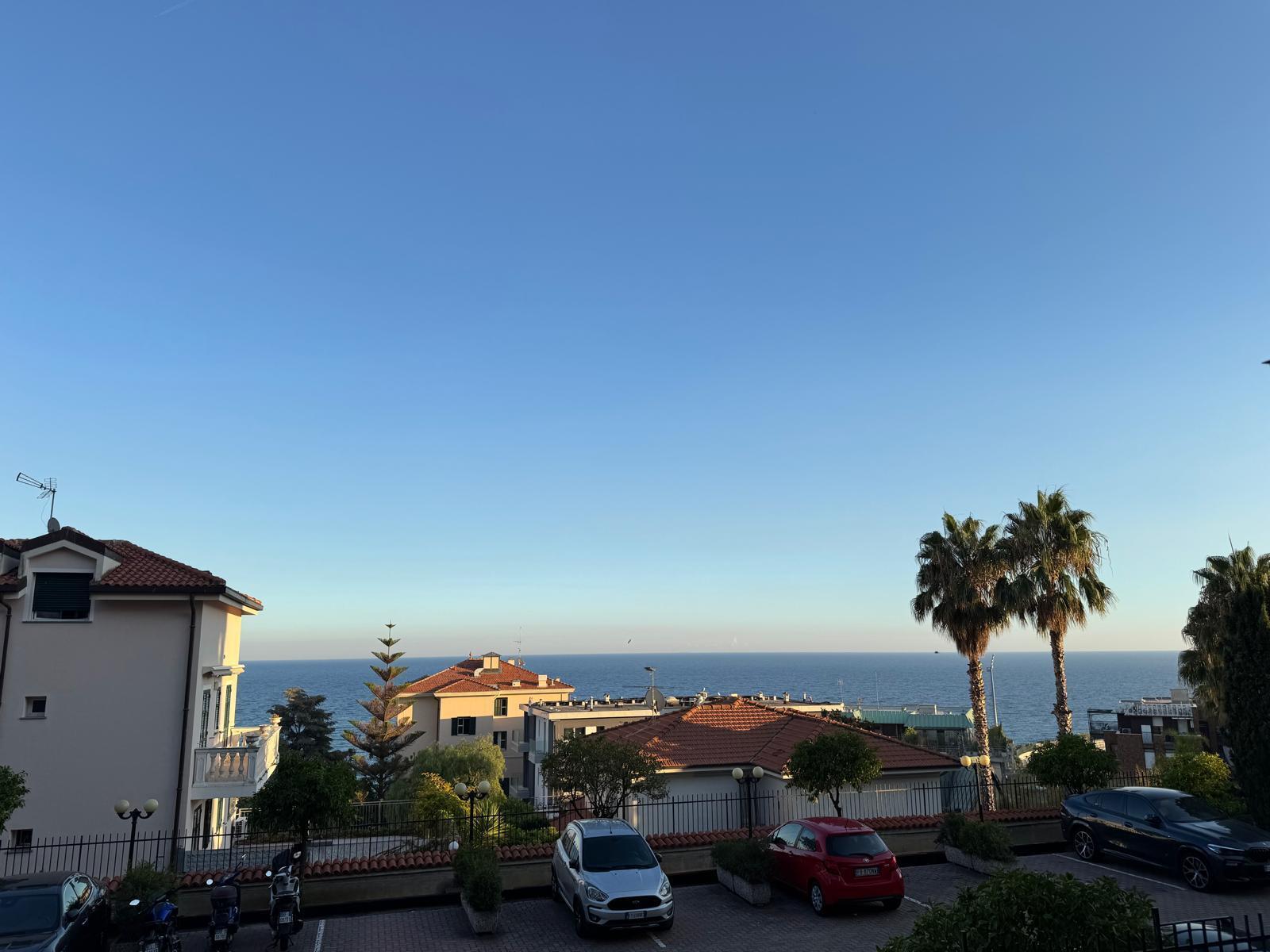 Appartamento fronte sud con vista mare, posizionato al piano rialzato dall'ingresso del condominio ma primo piano effettivo dall'esposizione sud dell'alloggio.