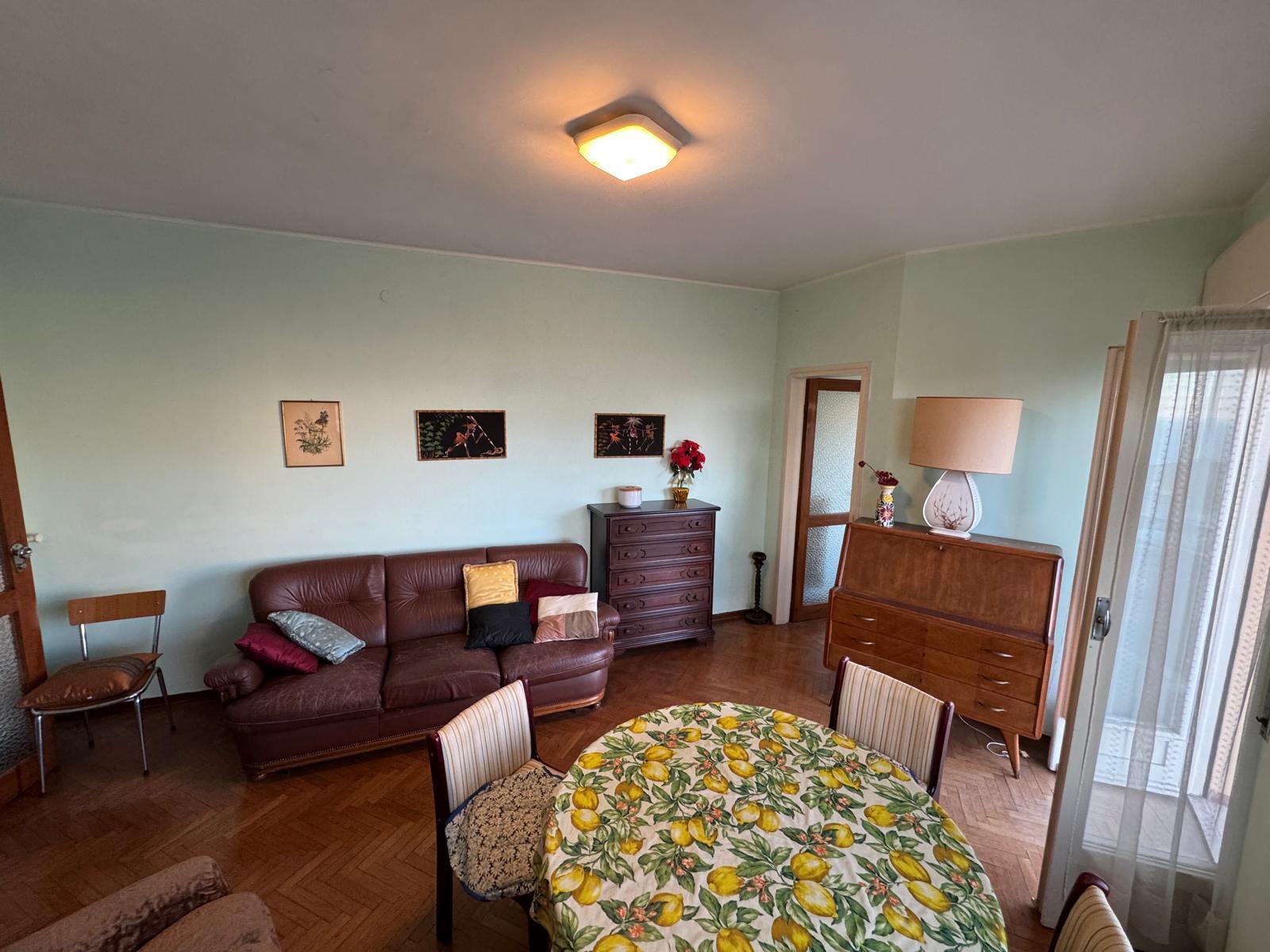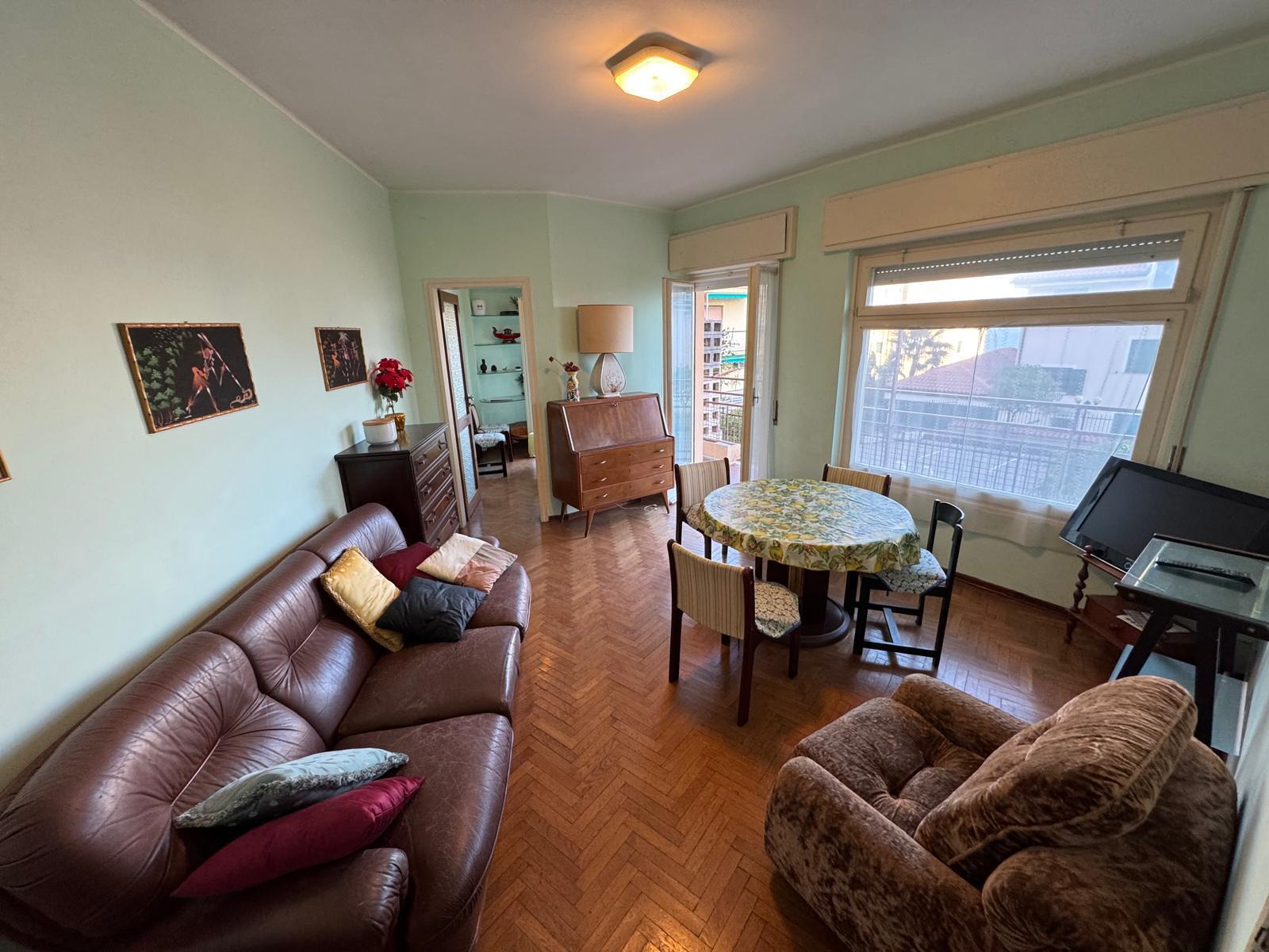 Composto da ingresso, cucina, sala, due camere, bagno con finestra, ripostiglio ampio . Posto auto privato scoperto di mq. 30 sotto casa in vendita a parte al prezzo di euro 30.000, 00 . L'appartamento necessita di ristrutturazione, posizione ottima sia per la comodità ai servizi che mare e ciclabile a pochi passi.