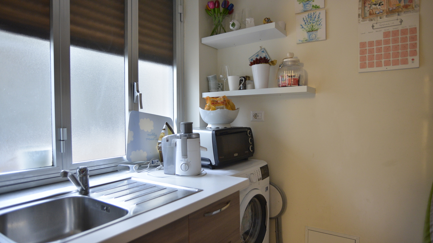 Lingresso ci introduce nel primo ambiente affacciato con un bel balcone su Via Putignani; da questo ambiente accediamo al cucinotto, con una bella finestra, completamente arredato e corredato di elettrodomestici.