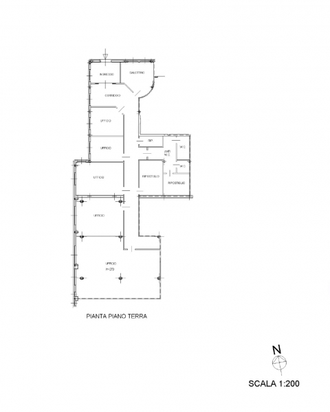 Ufficio di 260mq al piano terra, posizionato nel cuore della zona industriale di Buja su stabile edificato nel 2012. Ingresso con spazio accoglienza e segreteria, sala dattesa con possibilità di trasformazione in sala riunioni, 5 uffici di varie metrature, ripostiglio, stanza tecnica e doppi servizi per il personale.
