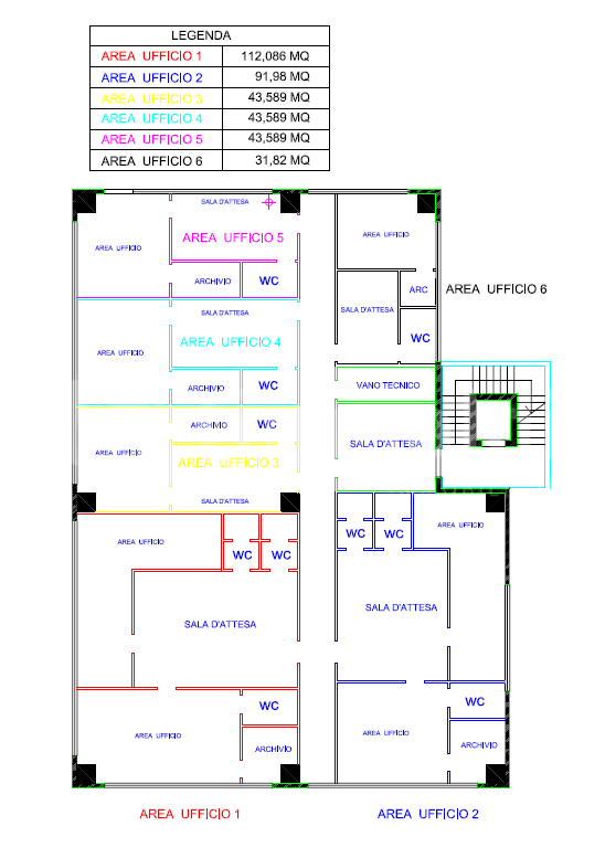Il piano ha una superficie di circa 500mq, con possibilit di frazionamento, personalizzando cos gli spazi in base alle proprie esigenze.