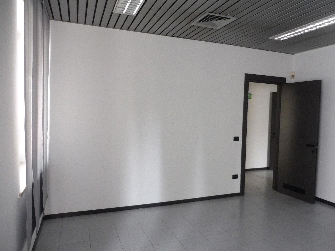 In posizione centrale affittasi ufficio di ampia metratura suddiviso da pareti mobili, quattro bagni e parcheggio pubblico esterno.