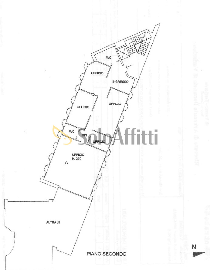 In edificio di recente realizzazione adibito ad uso commerciale e residenziale, dotato di ascensore, disponiamo di UFFICIO di circa 230 mq. posto al 2° piano, composto da 6 vani oltre ingresso, corridoio e doppi servizi.