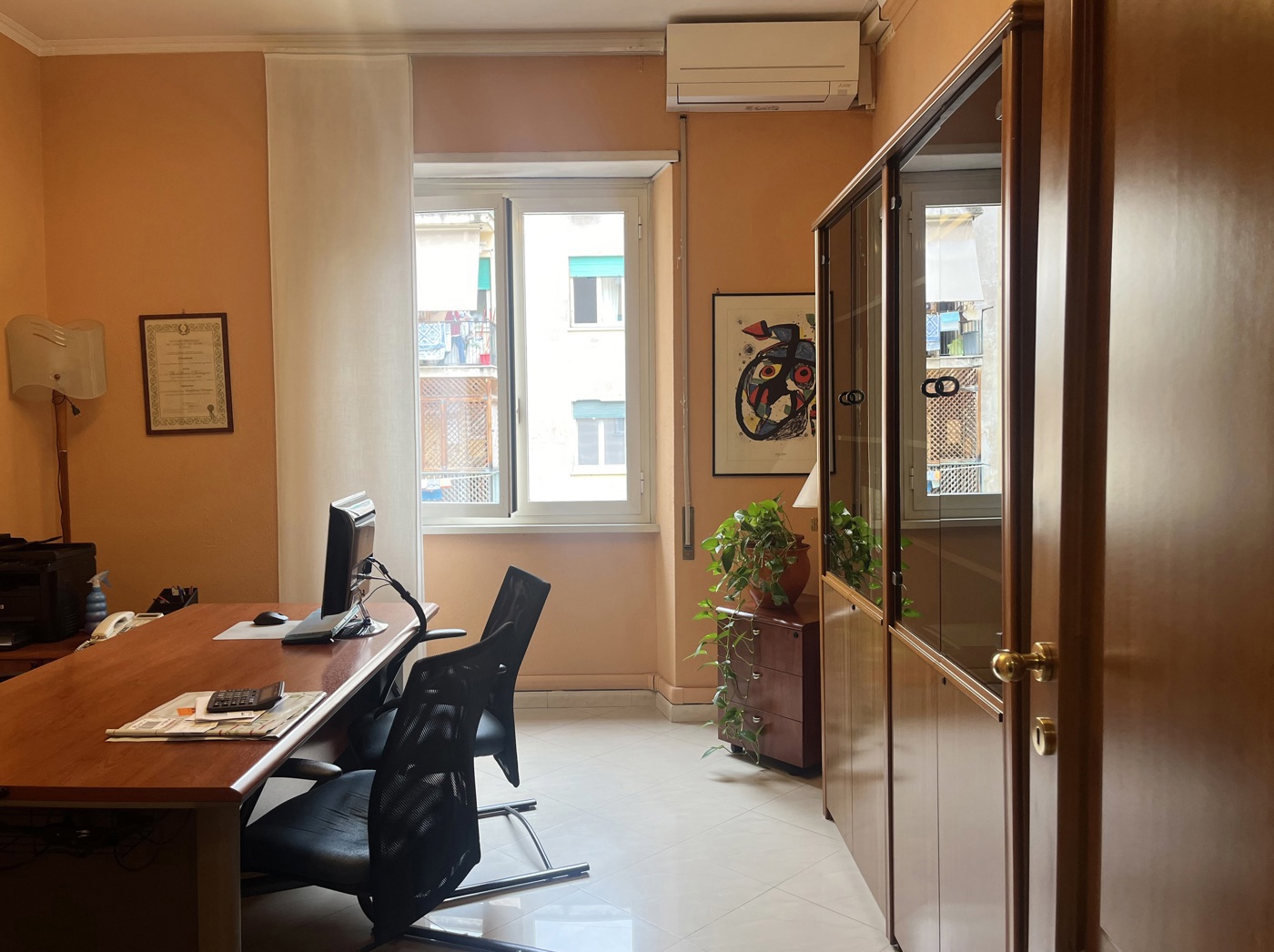 Nello studio attualmente lavora un consulente del lavoro ed composto da ingresso con sala d'attesa, quattro stanze totali, un bagno condiviso ed un antibagno; possiede infissi doppio vetro, riscaldamento centralizzato con radiatori e condizionatori presenti ovunque.
