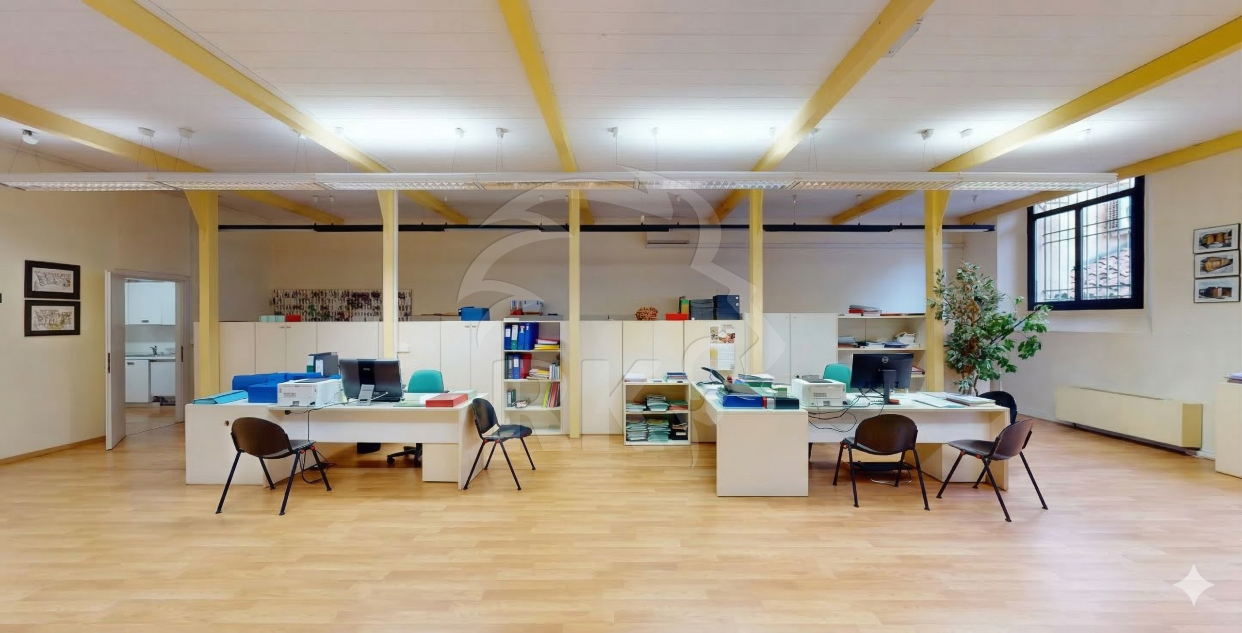 Caratteristiche principali: Ambienti: Tre ampi vani e un grande open space facilmente divisibile, cucina arredata, ripostiglio/archivio.