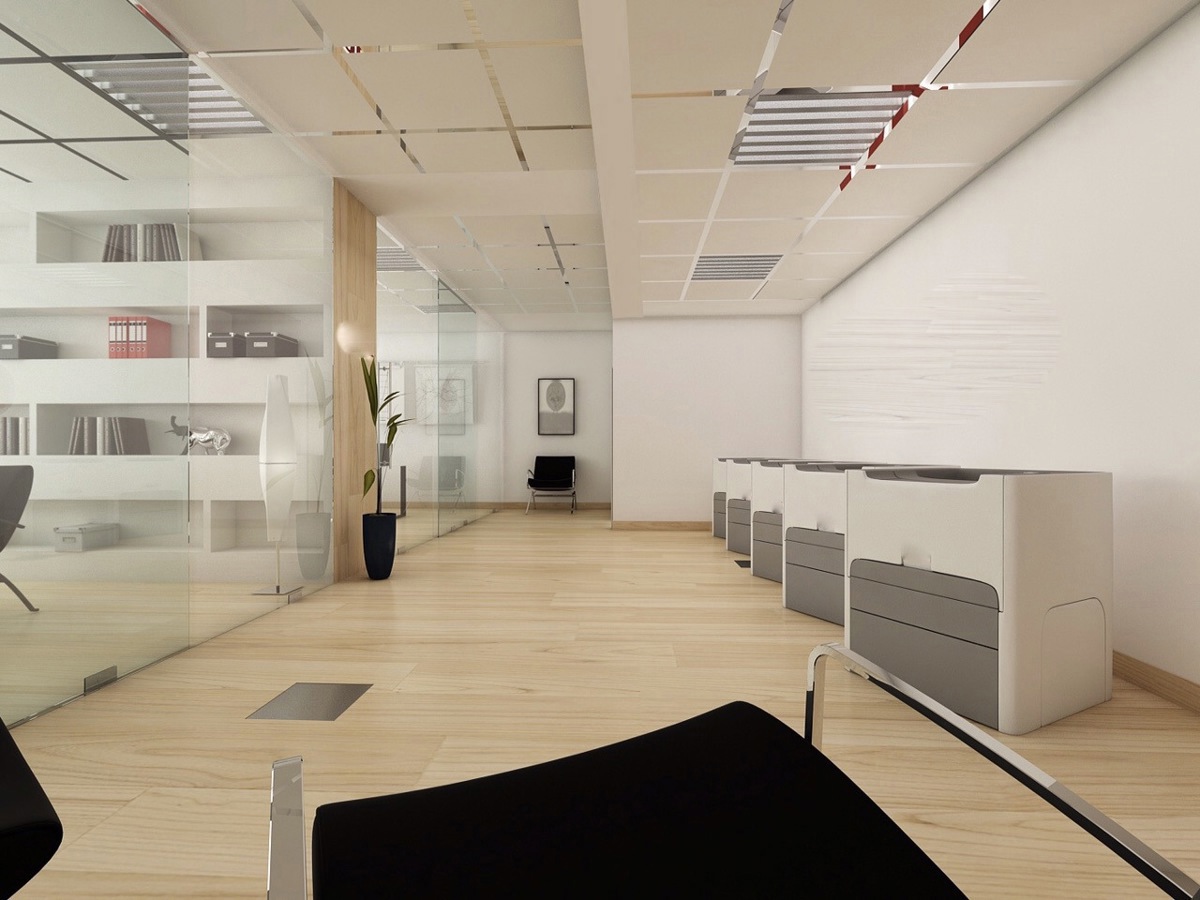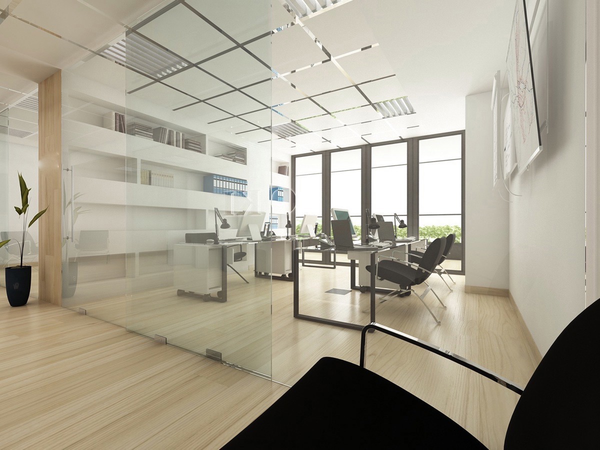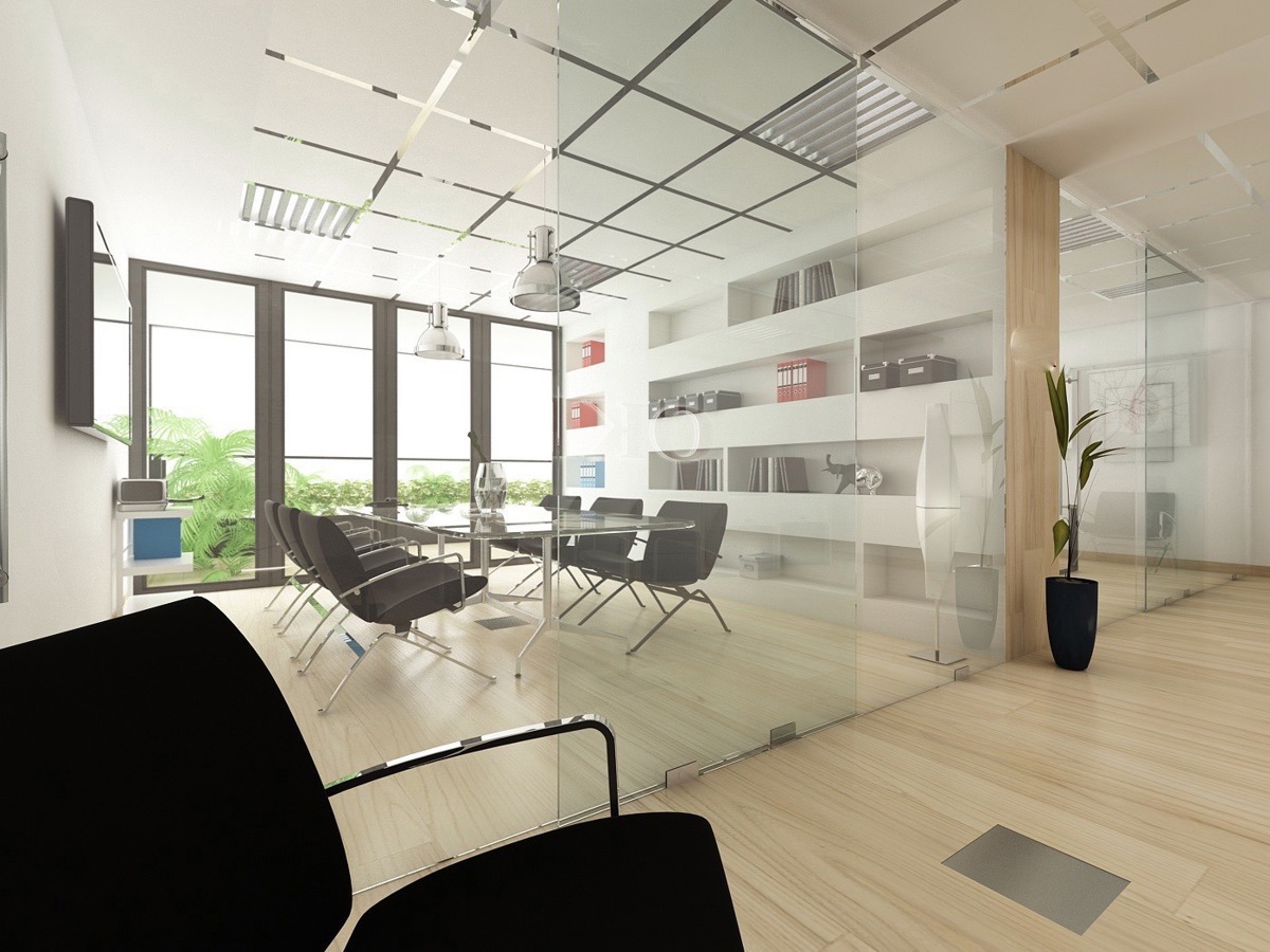 Le immagini mostrano le potenzialit di allestimento degli ambienti (sono presenti i pannelli divisori in vetro). I moderni uffici sono stati progettati per offrire spazi comodi e funzionali, con infissi a tutta altezza verso l'ampio terrazzo esterno che garantiscono luminosit agli ambienti e sono serviti da domotica, impianto elet-trico di trigenerazione, cablatura rete e impianto di riscaldamento e raffrescamento.