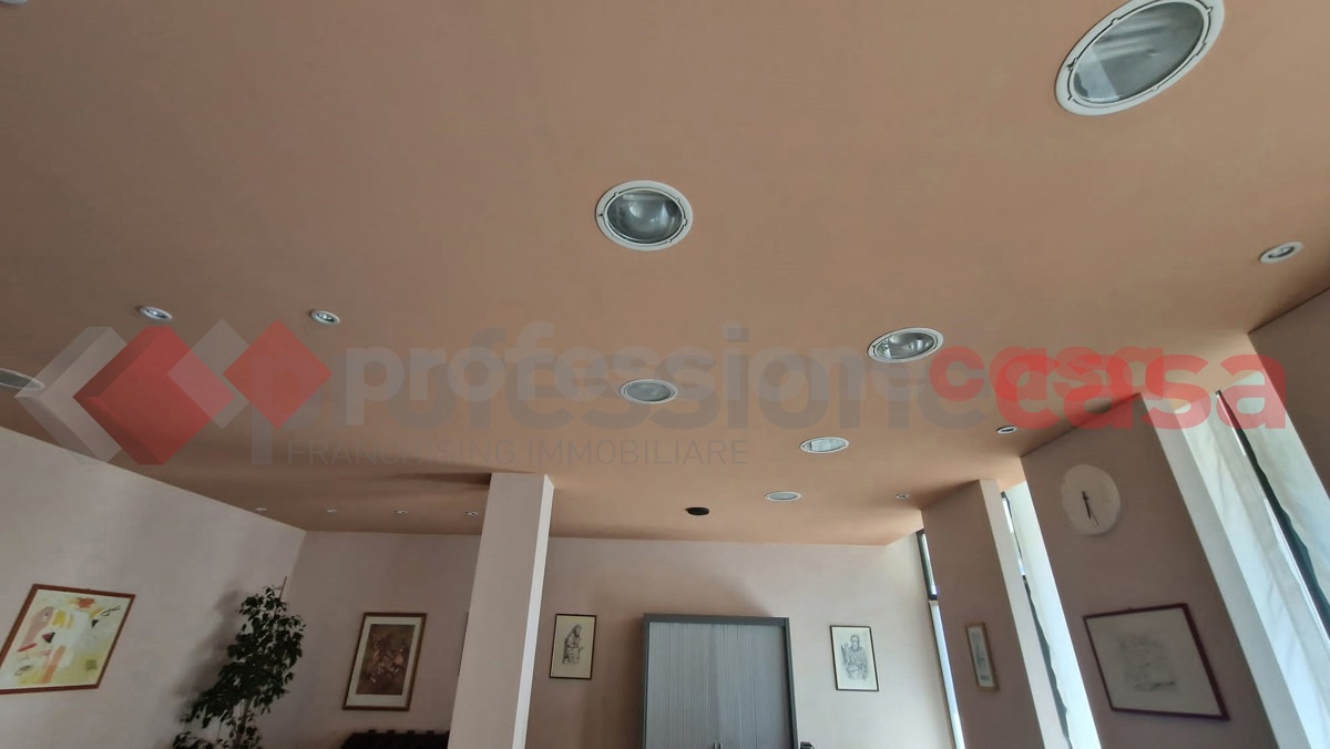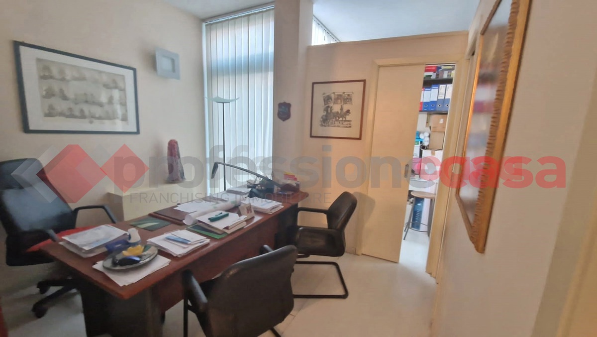 Internamente si compone di un ampio ambiente principale con pavimentazione in gres e controsoffitto con faretti incassati, una seconda stanza con pavimento in laminato, tre comodi ripostigli funzionali allorganizzazione aziendale, antibagno e bagno.