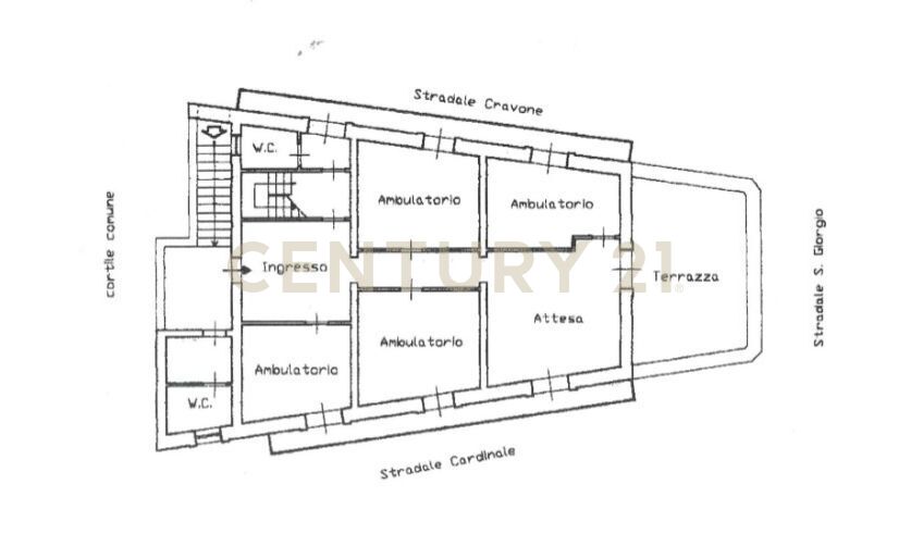 Limmobile, in buone condizioni, si presenta con ingresso disimpegnato, sala dattesa, tre ambulatori/studi professionali, due bagni, terrazzino di circa 30 mq e due balconi paralleli che garantiscono ottima luminosità. Completa la proprietà un locale archivio posto al secondo piano.