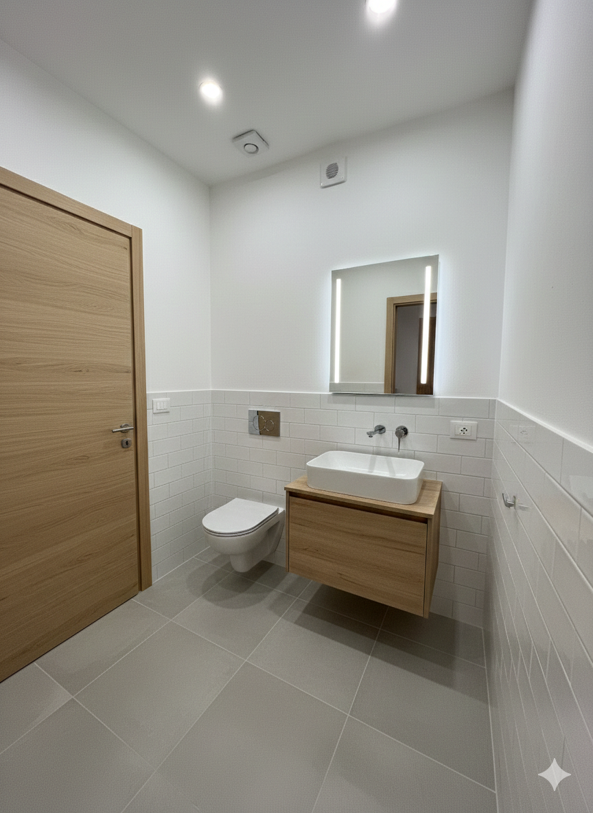 La struttura offre: Stanze private: 5 ampie e luminose stanze ad uso ufficio (circa 25 mq ciascuna). Spazi comuni: Bagni moderni, ampi disimpegni ed una grande terrazza.