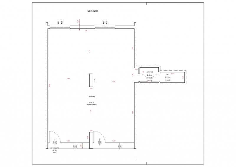 Il locale è in fase di completa ristrutturazione da parte della proprietà ed è composto da una grande e luminosa stanza con possibilità di divisione tramite tramezzi, un antibagno ed un bagno ad aspirazione forzata.