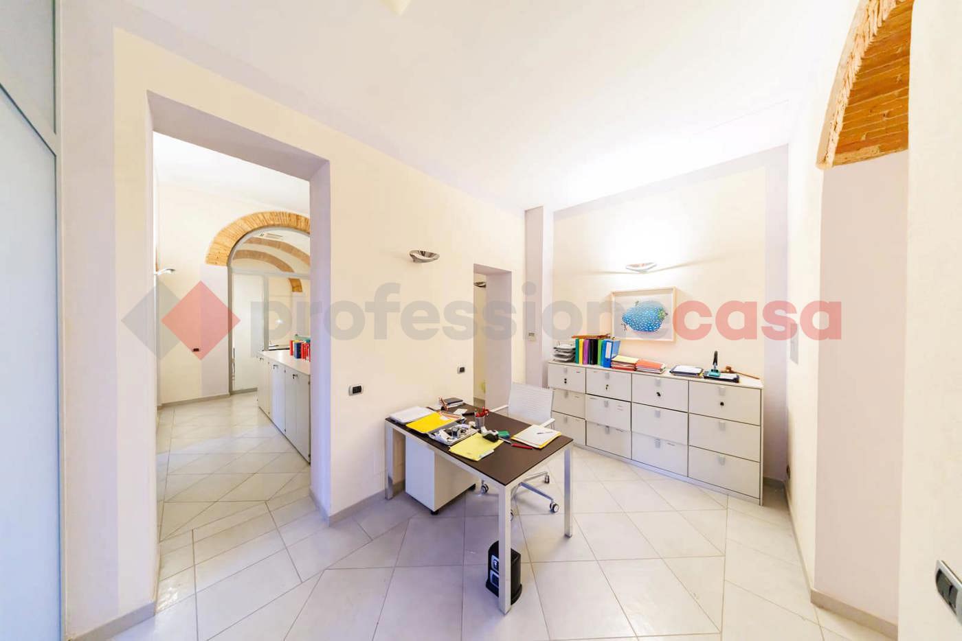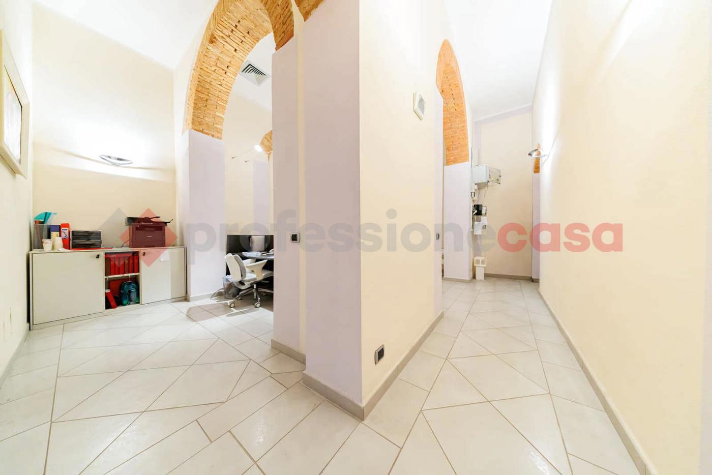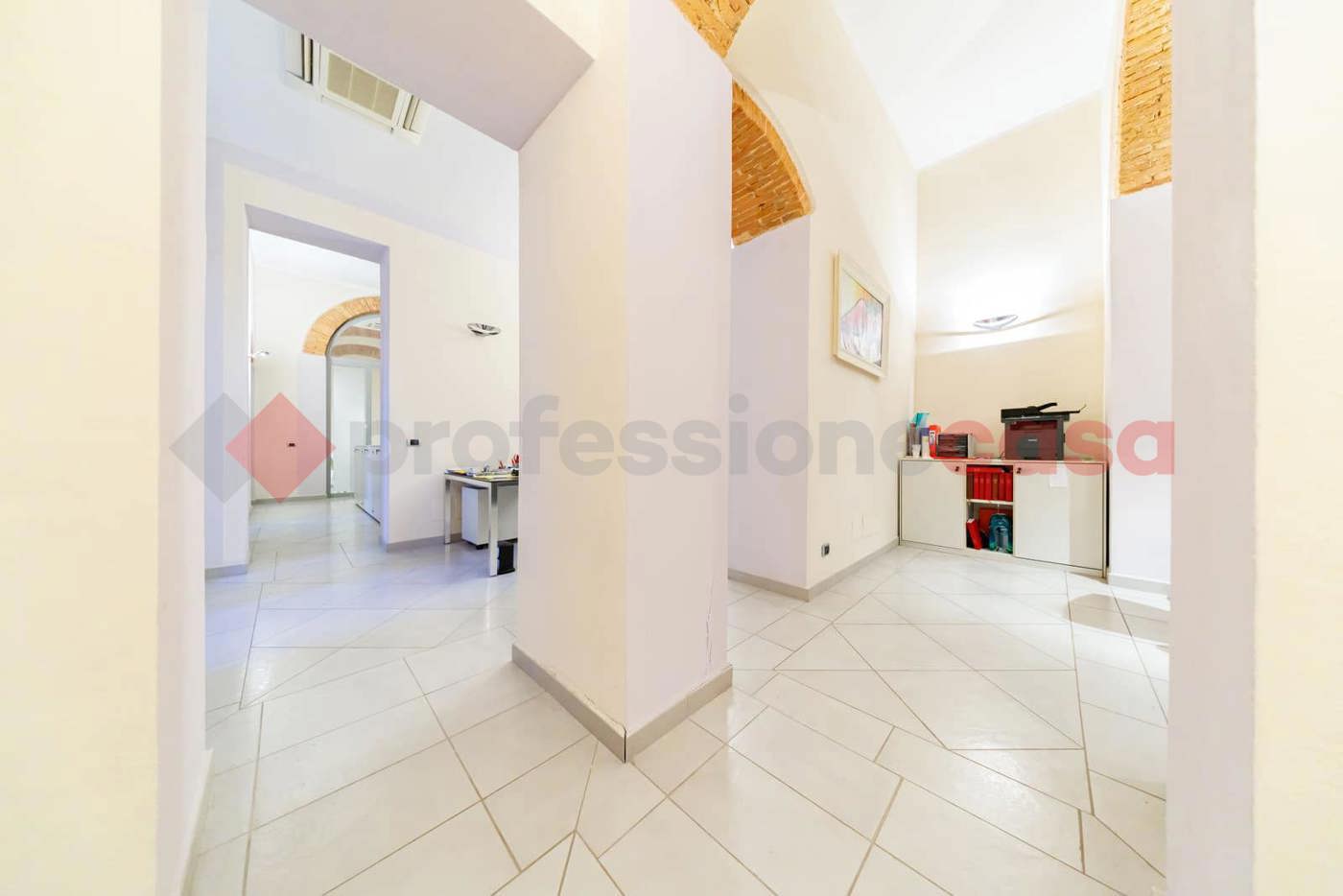 Da qui si sviluppano tre vani distinti, adatti come uffici direzionali o operativi, tutti caratterizzati da ambienti luminosi e ben proporzionati.