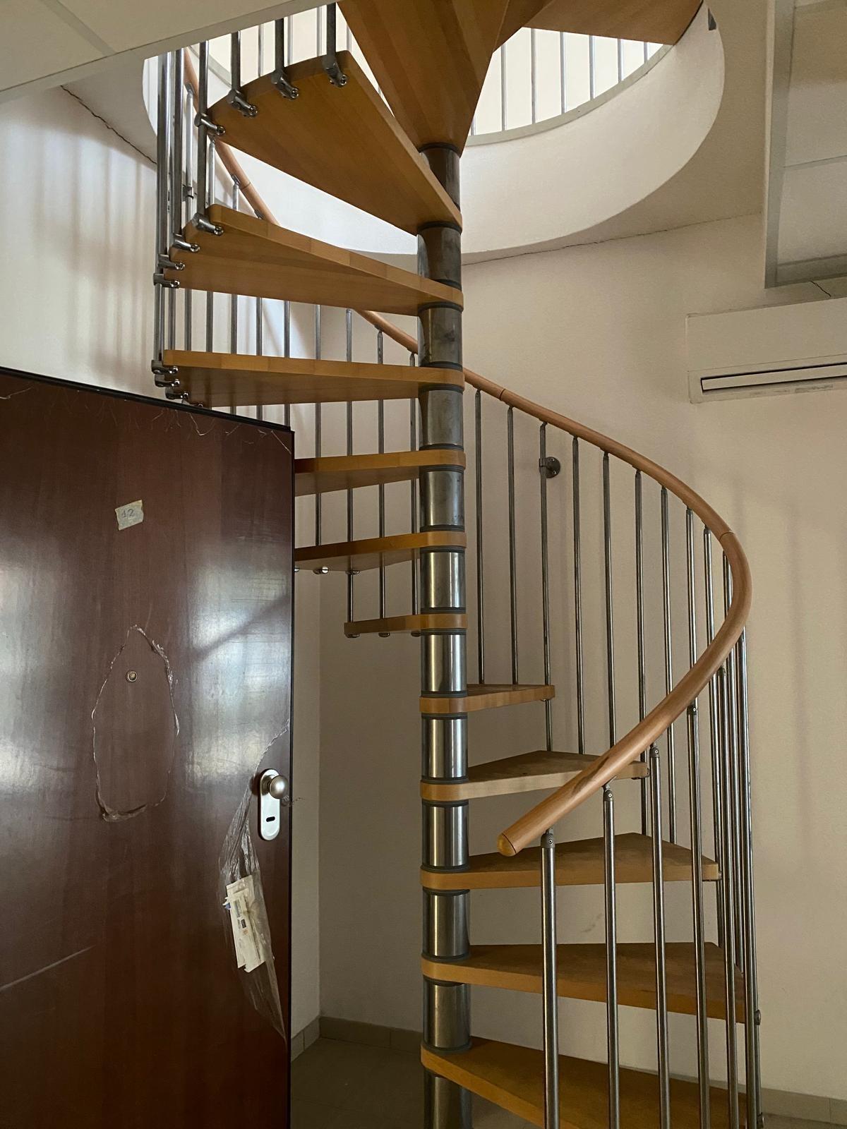 Una scala a chiocciola autoportante consente di raggiungere il sottotetto costituito da un unico locale indiviso, dotato di lucernario e finestre scorrevoli poste sul lato con altezza inferiore (Nord-Est) e, analogamente al piano inferiore, provvisto di splitter interni per la climatizzazione del locale.