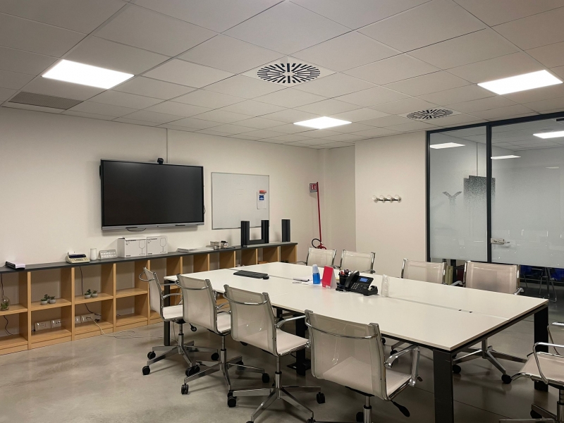 Gli spazi sono organizzati con pareti in vetro, impianto di climatizzazione caldo/freddo, e tende oscuranti.