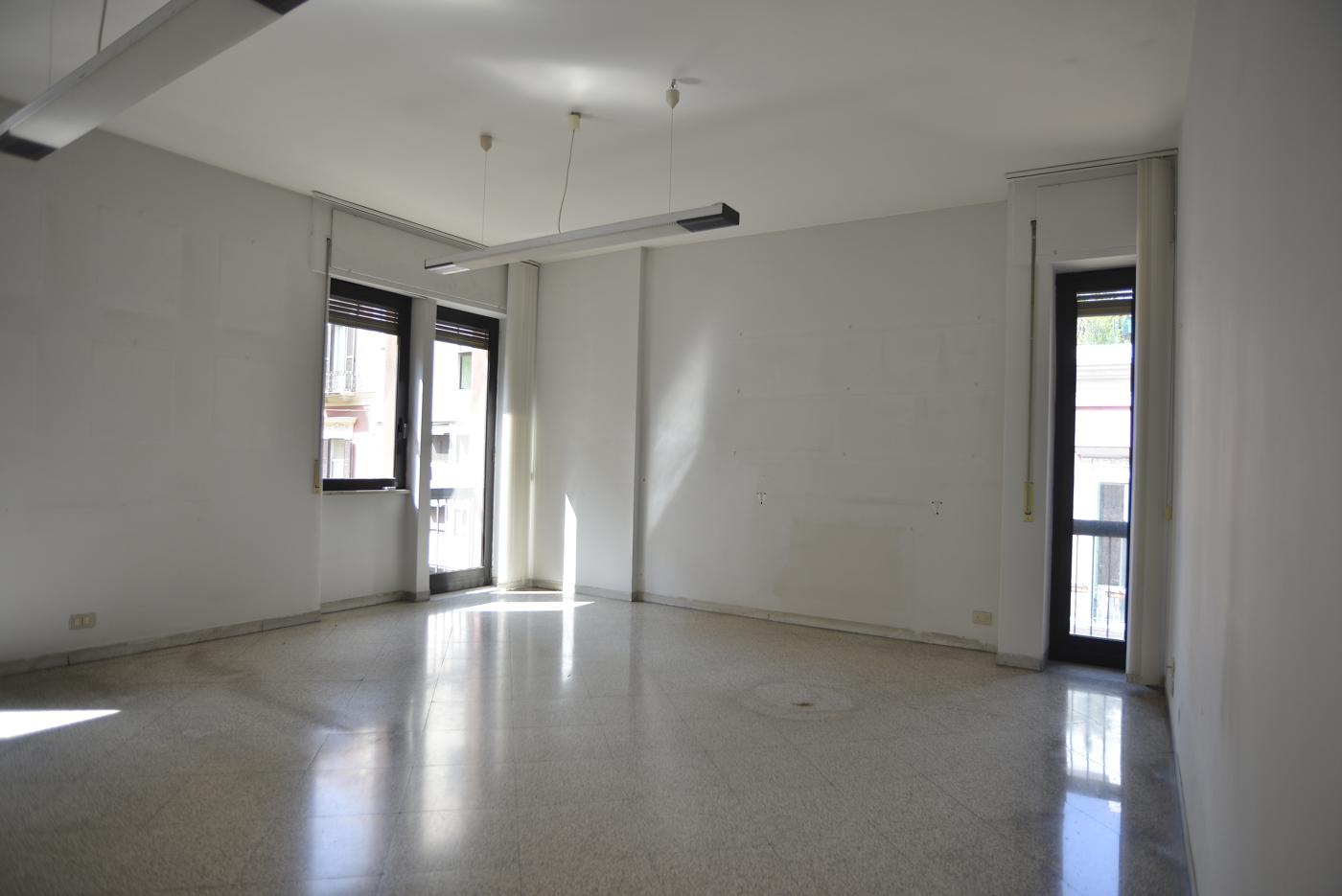 Lingresso funge da disimpegno per tutto limmobile; da qui raggiungiamo il salone angolare, caratterizzata da uno spazio ampio, con tre affacci, due su Via Dante ed uno su Via Argiro.