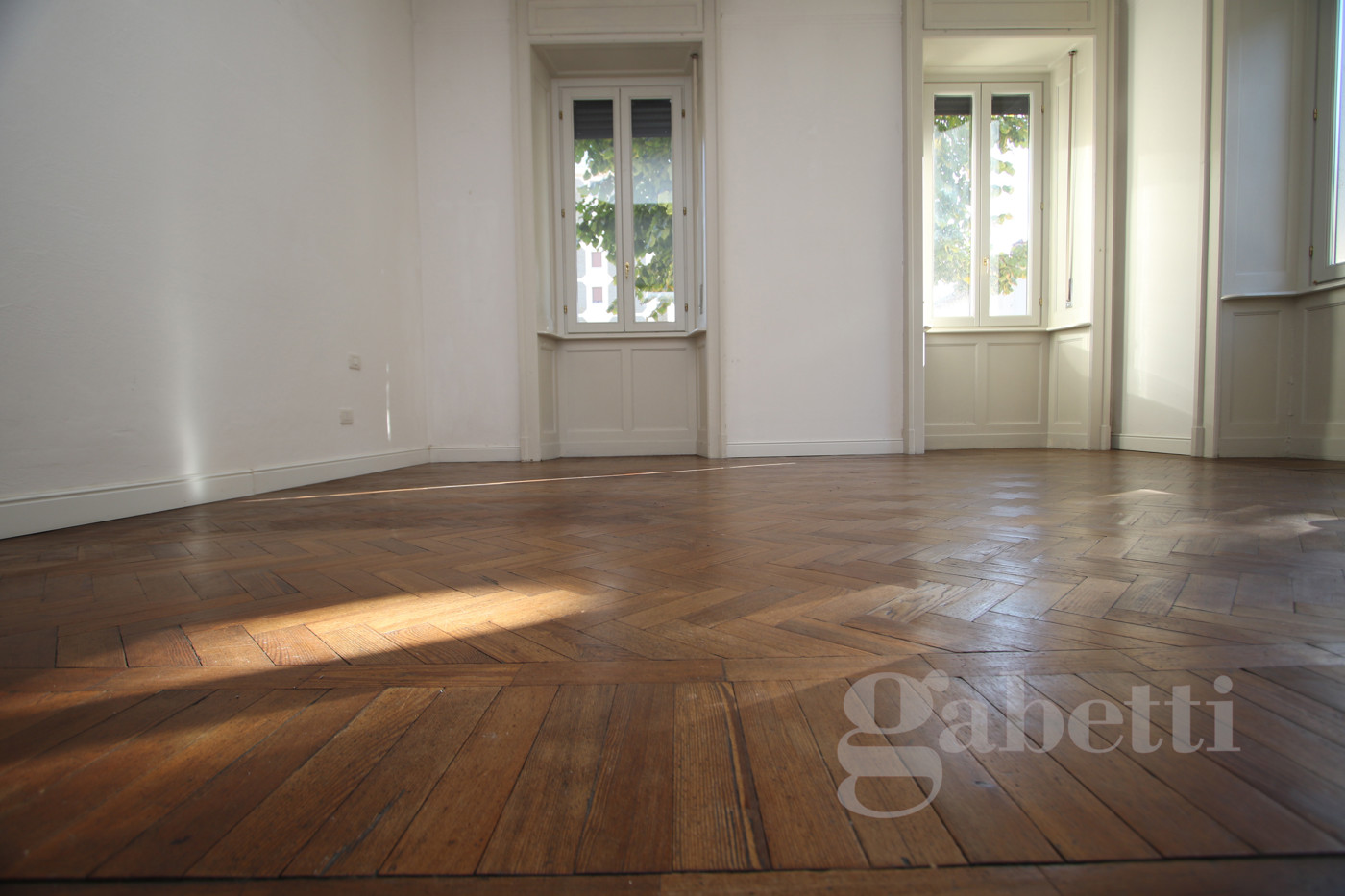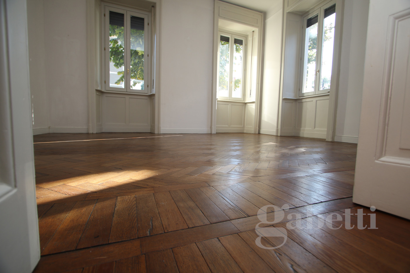 Completano la propriet cantina e posto ad uso. L'appartamento conserva la pavimentazione originale dell'epoca, marmette nella zona giorno e parquet a lisca di pesce nelle camere e nel soggiorno.