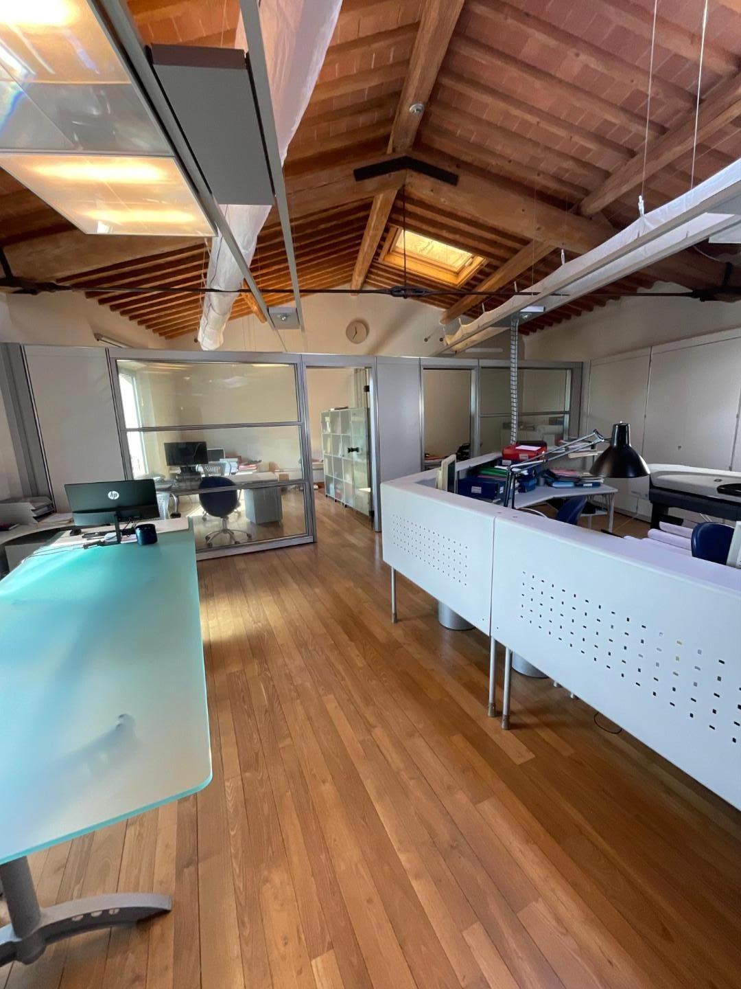 L'fficio è composto da ingresso, sala riunione e grande vano open space oltre a bagno per complessivi 180 mq. circa . La ristrutturazione è stata radicale e le finiture sono eccellenti (infissi in acciaio, lucernari a tetto molto ampi, pavimento in parquet, pareti divisorie in vetro, riscaldamento e raffrescamento con impianto di ultima generazione, fotovoltaico da 8,5 kwh, ecc. ecc.). A piano terra 2 posti auto di proprietà completano questa bellissima proprietà. IMMOBILE UNICO ! OCCASIONE !!! In attesa di certificazione energetica.