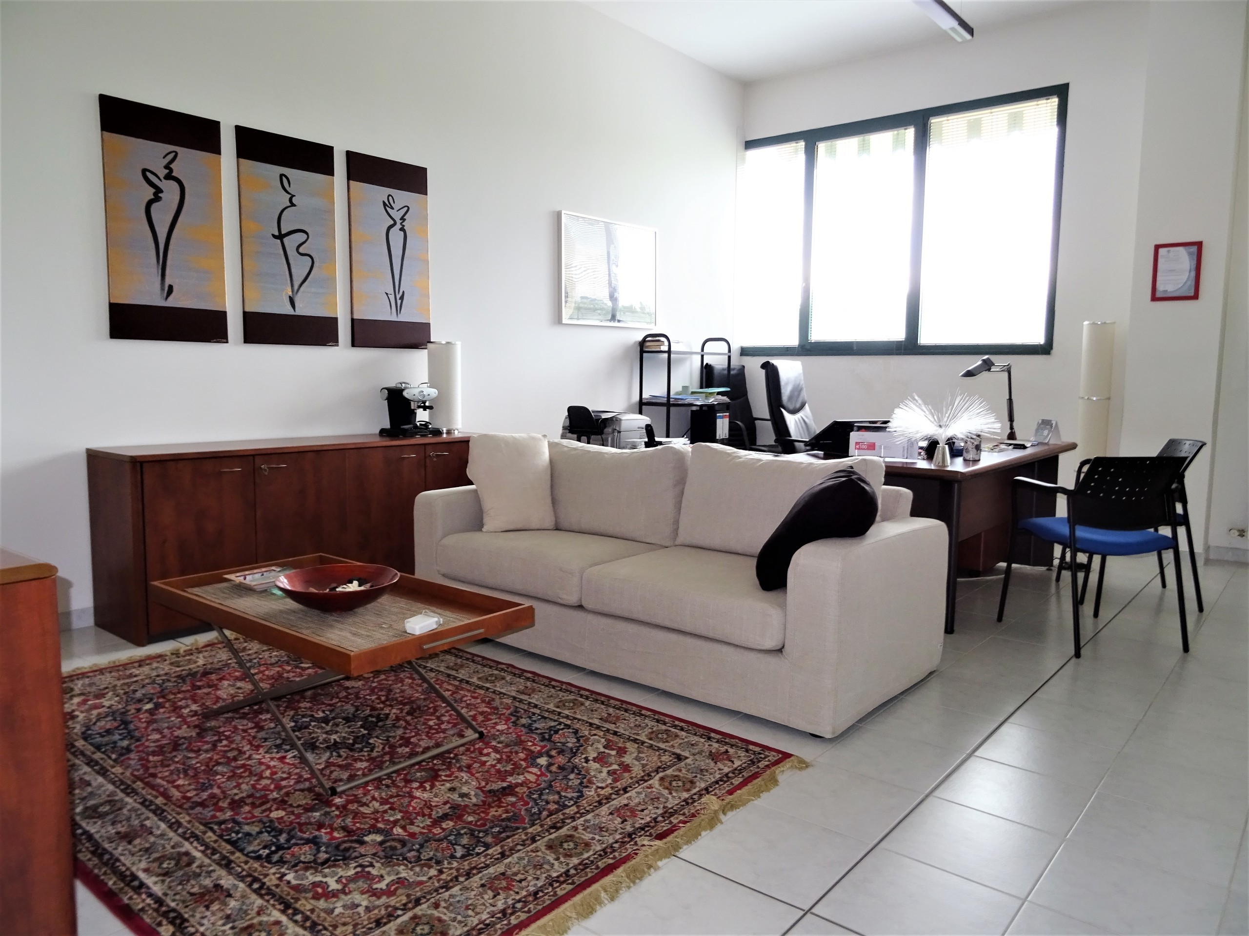 Si compone di ingresso nella reception, sala riunioni, 3 stanze uso ufficio, archivio, bagno con antibagno e doccia senza finestra.