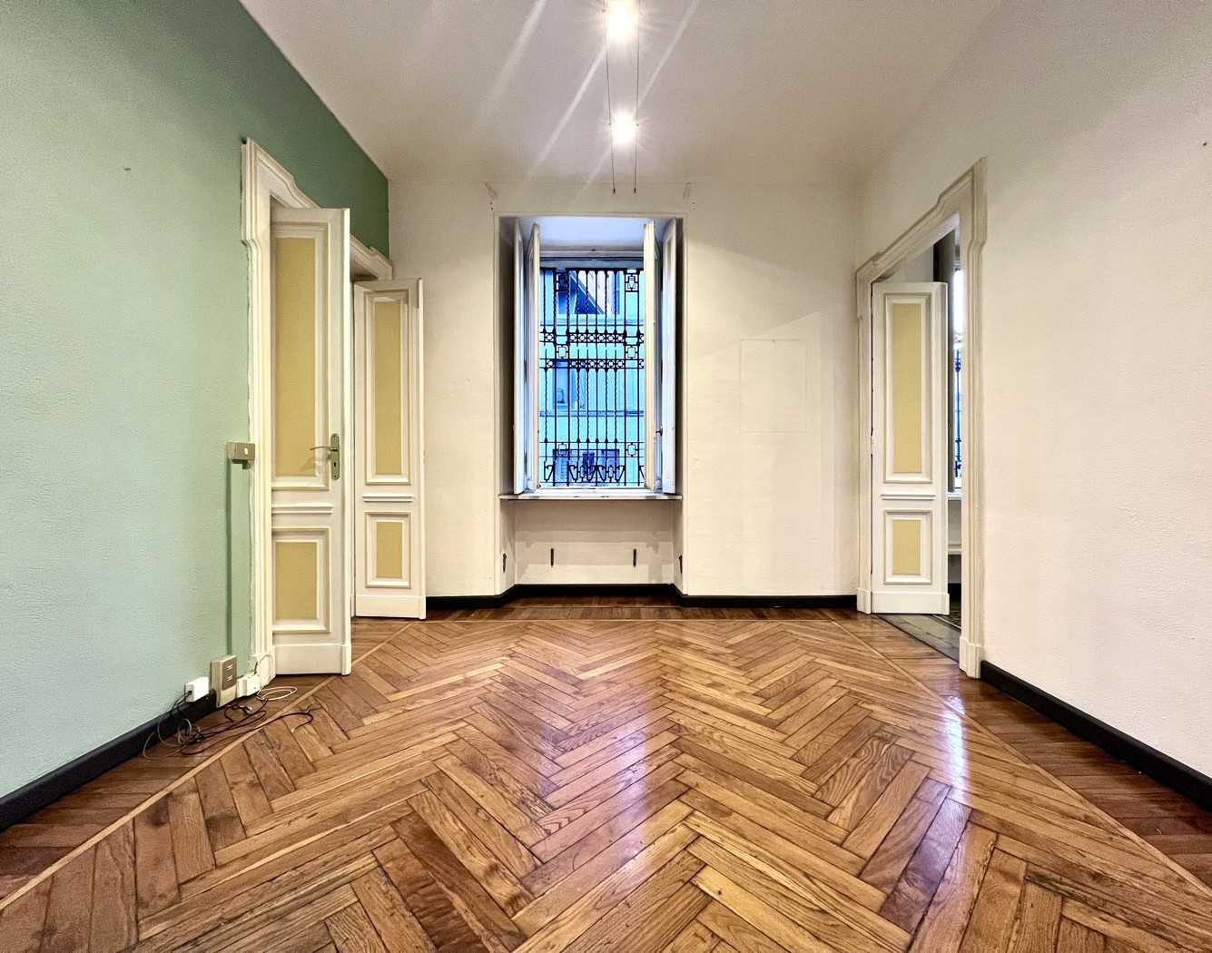 Ad. Ze corso regina margherita - via bettino ricasoli 4 in stabile depoca di inizi 900 proponiamo interessante immobile di 95 mq al piano rialzato attualmente ad uso ufficio (precedentemente abitazione) cos disposto: ingresso, quattro vani di cui uno con balcone sul cortile interno e bagno.