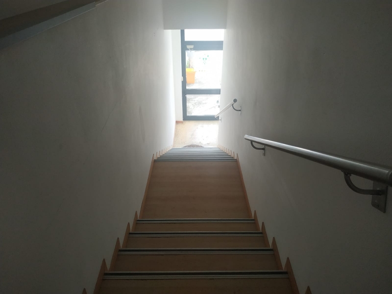 Al primo piano ulteriori 100mq con tre uffici e serivizi igienici con antibagno al piano.