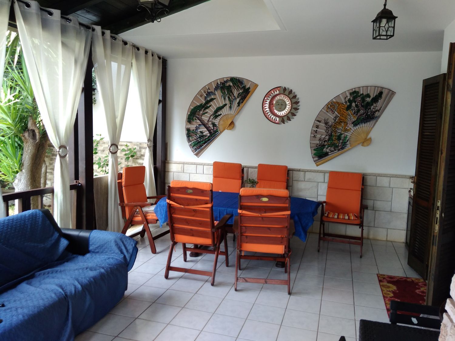 La villa è costituita al piano terra da una zona living con soggiorno-cucina e bagno; al primo piano da 2 camere da letto, bagno e terrazzino di mq. 10. Dispone al piano terra di un grande patio coperto e giardino di 160 mq. La villa è di climatizzazione in ogni camera.