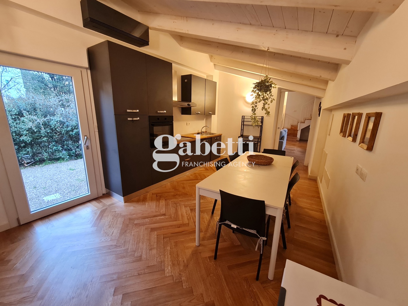 In contesto signorile e riservato di un ex convento totalmente ristrutturato e circondato dal verde, villetta semi indipendente, completamente arredata, di recentissima ristrutturazione disposta su due livelli cos composta: al piano terra, ingresso su salone con accesso al giardino privato, cucina abitabile anch'essa con accesso al giardino, un bagno.