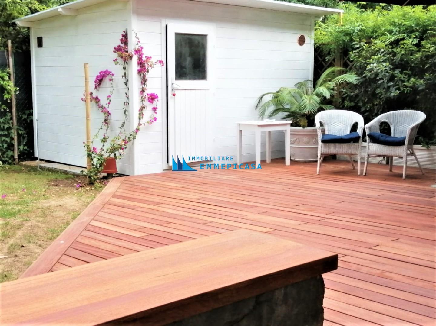 A soli 200 metri dal mare si affitta per stagione estiva graziosa villetta d'angolo con giardino privato e posti auto. Composta da due camere da letto, soggiorno, cucina a vista ma separata e bagno con doccia incassata.
