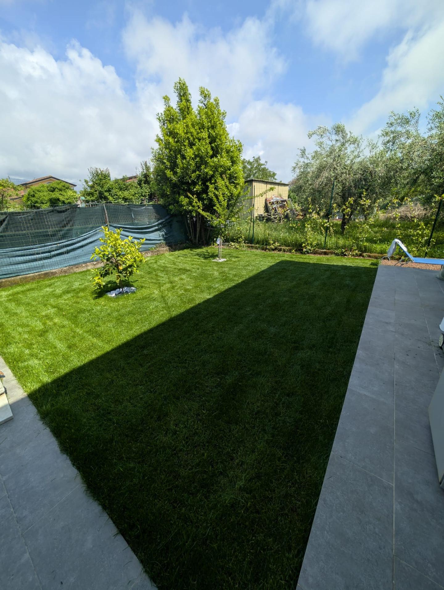 Giardino con zona lavanderia e spazio esterno pranzabile.