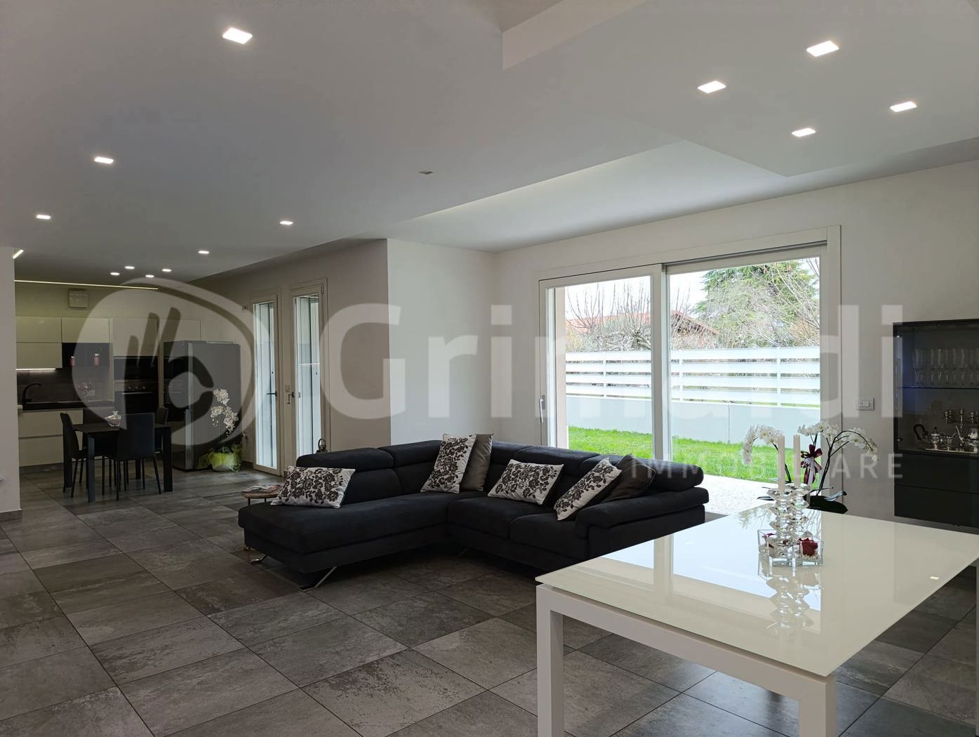 Elegante porzione di bifamiliare del 2017 in classe A4 con cortile esclusivo di circa mq. 300 su tre lati. Ingresso, ampio soggiorno - pranzo e cucina a vista entrambi con uscita sul giardino, terrazzi con loggia di circa mq. 52, zona notte con 3 belle camere da letto ed in particolare una matrimoniale con cabina armadi e bagno finestrato, altri due bagni.