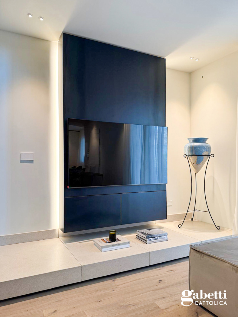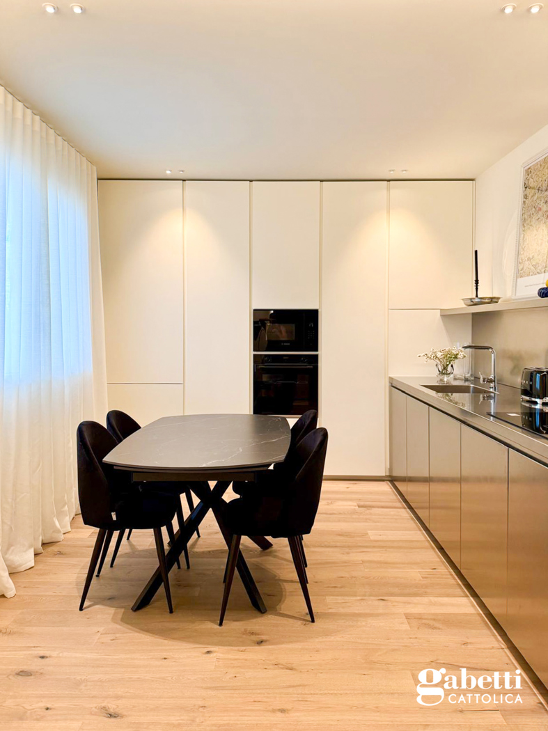 La ristrutturazione stata realizzata con materiali di pregio, mentre tutto il mobilio su misura, progettato e realizzato da un architetto, garantendo un risultato estetico raffinato e una funzionalit impeccabile.