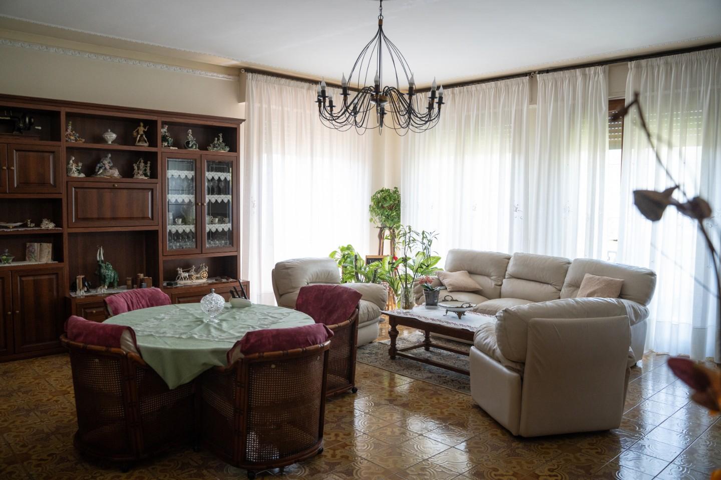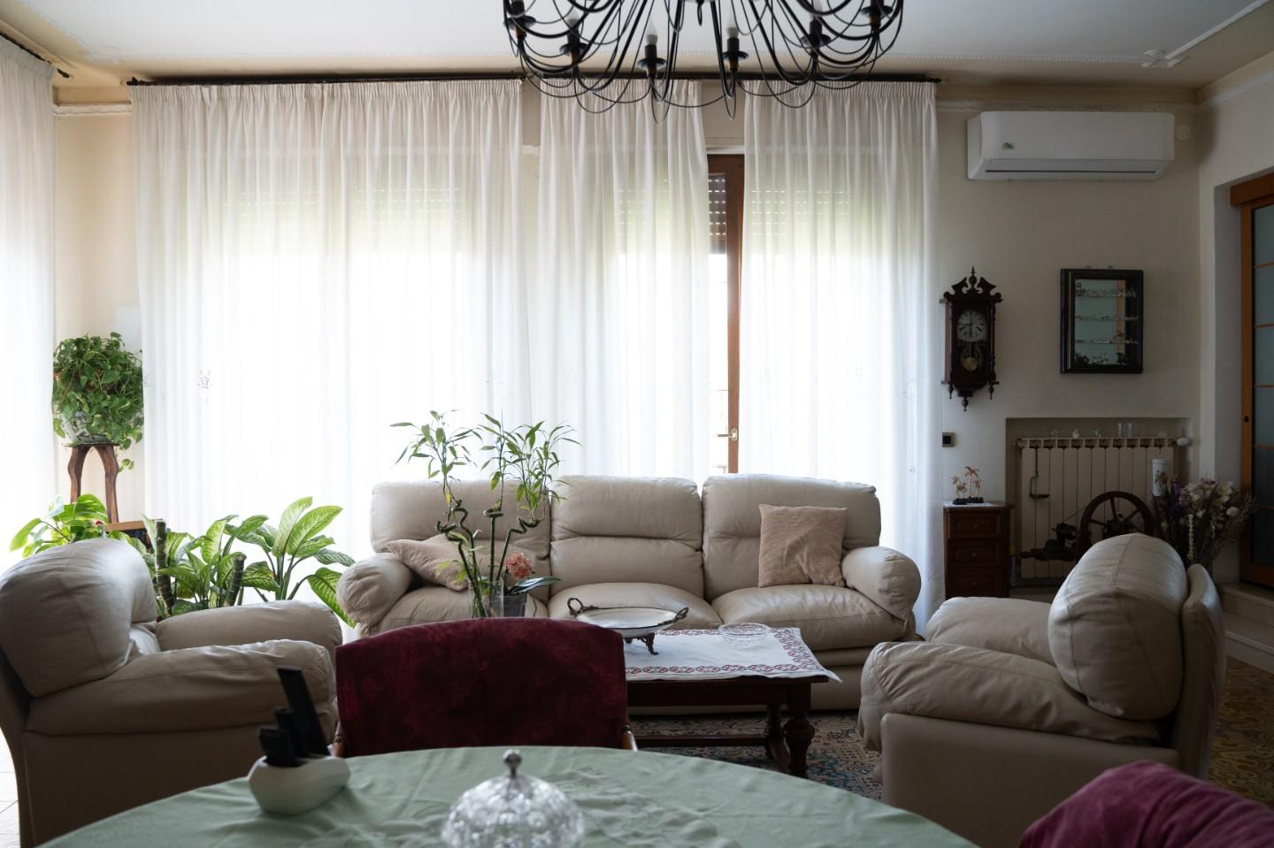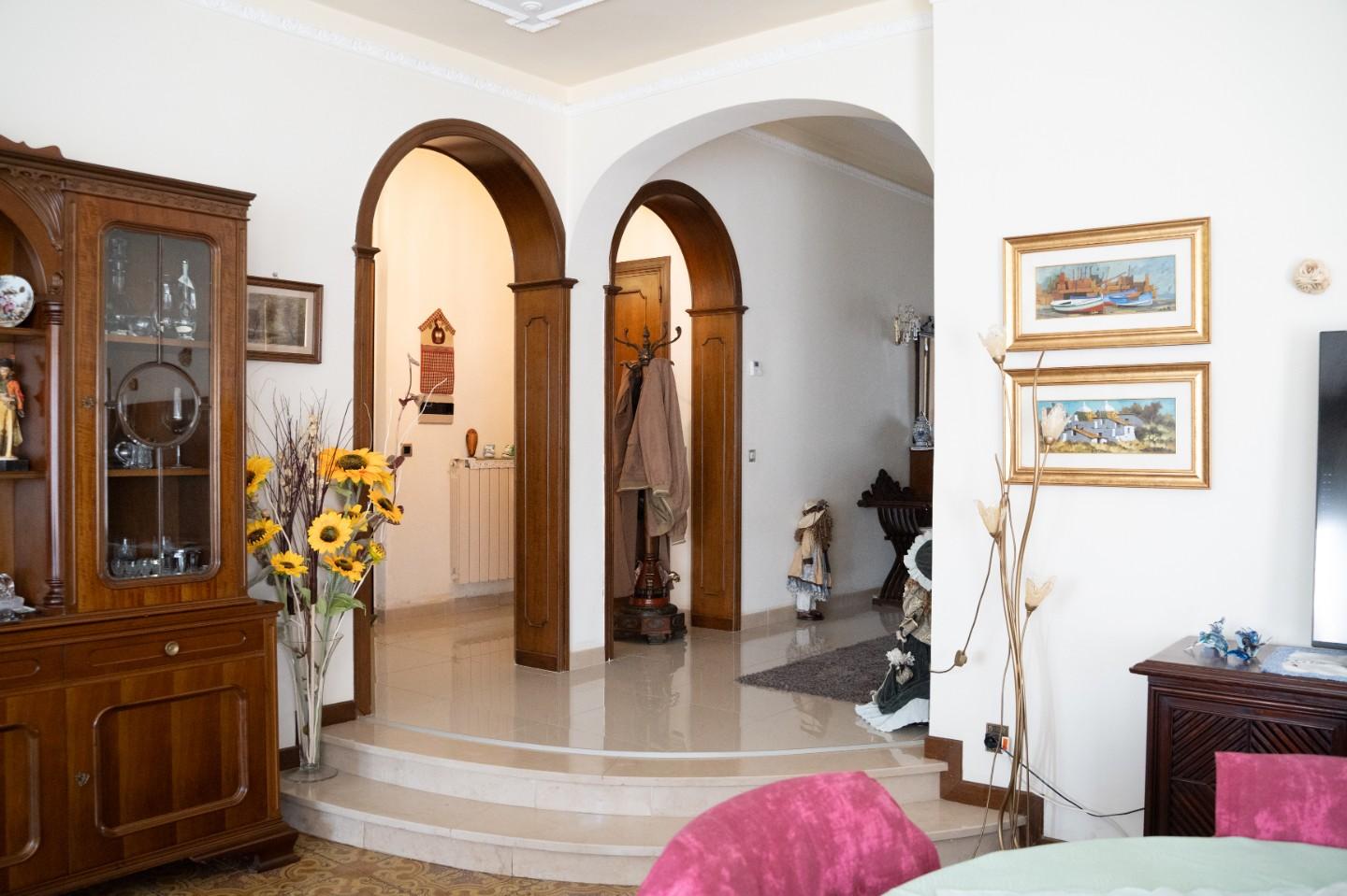 Disposta su due livelli, offre 10 ampi vani, spazi ben distribuiti, grande giardino di proprietà e 3 posti auto scoperti.