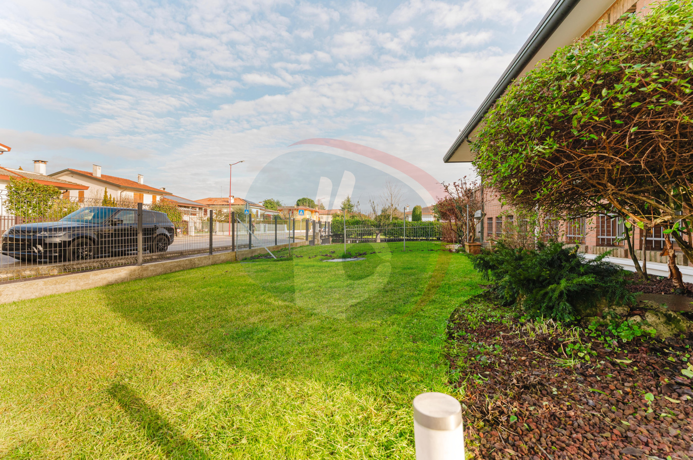 A completamento, garage doppio collegato di 35 mq con pompeiana e bellissimo giardino su tre lati di 350 mq che offre uno spazio verde ben curato.