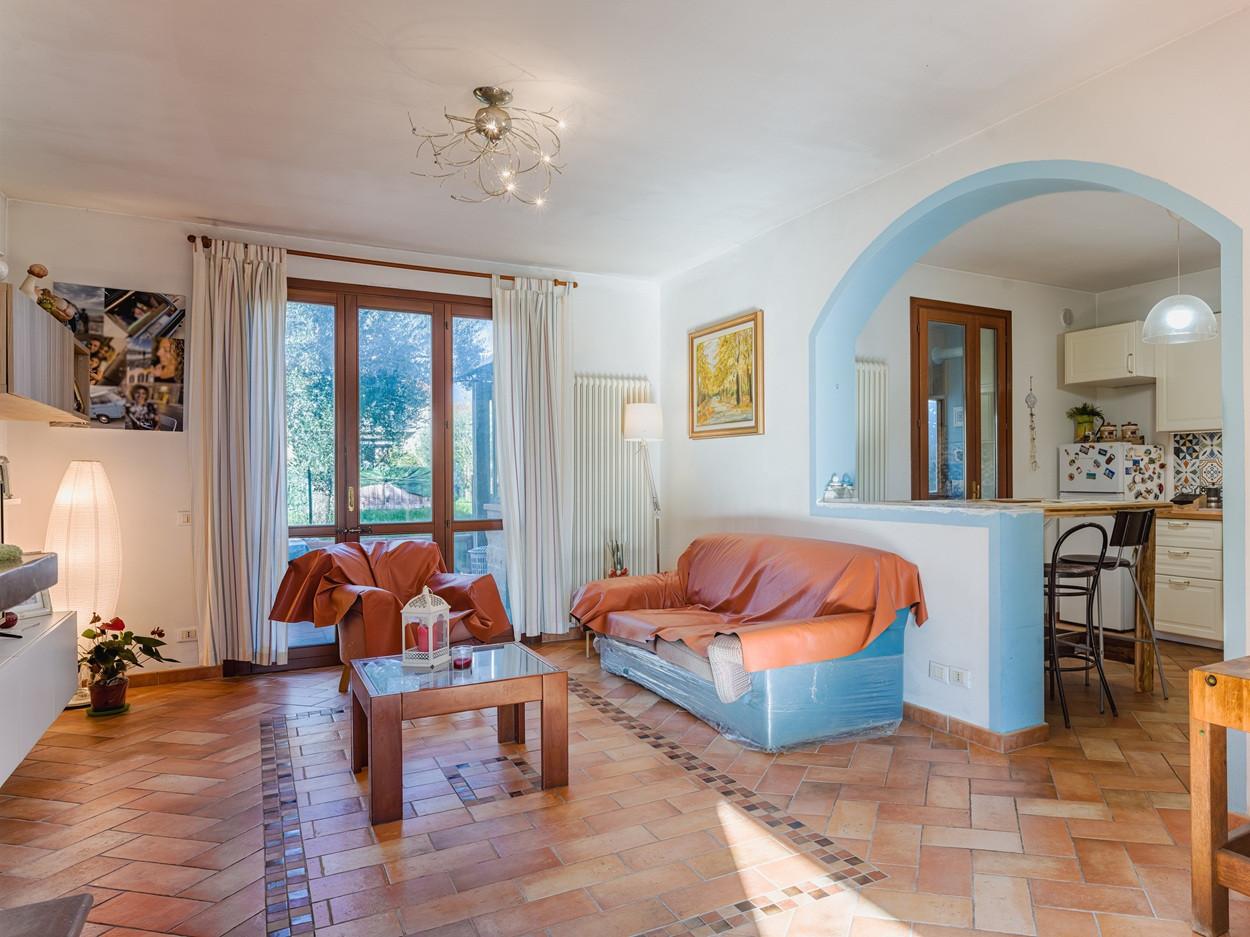 Distribuzione interna Al piano terra troviamo lingresso in ampio e luminoso soggiorno, cucina abitabile con accesso diretto al giardino, bagno finestrato con doccia e disimpegno che conduce al garage, attualmente adibito a studio (con possibilità di ripristino ad uso autorimessa). Una elegante scala interna accompagna al piano primo, dedicato alla zona notte, composta da: ampia camera matrimoniale due camere singole bagno finestrato con vasca Completa la proprietà un sottotetto abitabile, attualmente organizzato con zona palestra, una camera aggiuntiva e angolo studio, ideale come spazio multifunzionale.