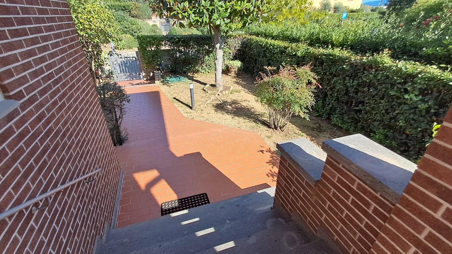La casa fa parte di una struttura di Villetta BIFAMILIARE, con esposizione a est -sud - ovest, pertanto ideale per avere il sole in tutti i periodi dell'anno. Composta, all'esterno da ampio giardino e accesso al garage da rampa carrabile, per mezzo delle scale esterne si raggiunge il loggiato al piano rialzato e si accede al vano d'ingresso, dove le rampe di una comoda scala, su un lato, salgono al piano primo dell'abitazione e sull'altro scendono al seminterrato.
