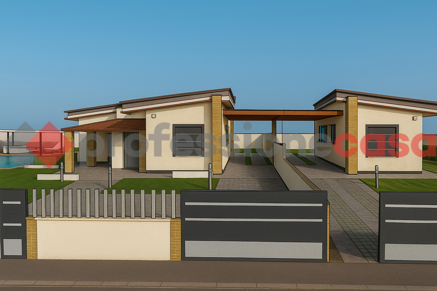Liniziativa che si integra perfettamente con lambiente circostante formata da 22 ville indipendenti di 100 mq circa composte da salone doppio con cucina a vista, due camere matrimoniali, due bagni entrambi con finestra, ampi giardini a partire da 500 mq, patii in muratura che si possono sfruttare per il tanto richiesto ed ambito Terrazzo dInverno, Le caratteristiche predominanti di questa interessante iniziativa sono: il portoncino blindato, riscaldamento a pavimento, pannelli termici e fotovoltaici da 1,5 kw/h. predisposizione aria condizionata, infissi in legno con vetrocamera a taglio termico, Essendo in fase di costruzione, offriamo la possibilit di modificare la distribuzione interna, adattandola alle proprie esigenze abitative e di realizzare piscine private.