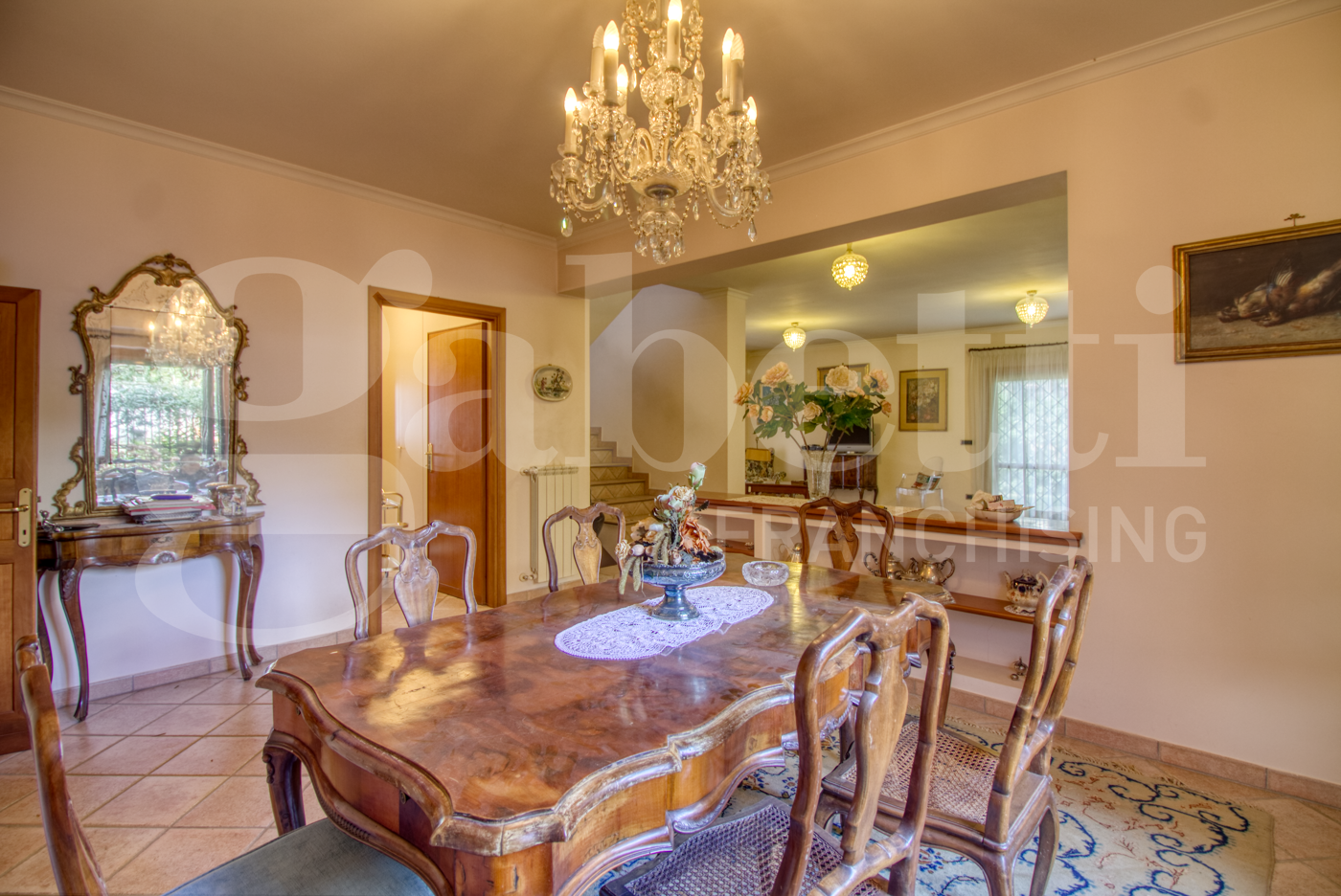 La villa si sviluppa su pi livelli, con ambienti ampi, luminosi e perfettamente distribuiti ed cos composta: Piano seminterrato: raffinata e luminosa sala hobby con cucina e camino, bagno, ripostiglio, grande box per due auto e intercapedine; Piano terra: importante salone triplo con camino con opzione di ricavare una camera matrimoniale aggiuntiva o una sala da pranzo separata, ampia cucina abitabile con accesso diretto a un portico vivibile, bagno; Piano primo: tre camere matrimoniali di cui una con cabina armadio e bagno in suite, un secondo bagno, terrazzi.
