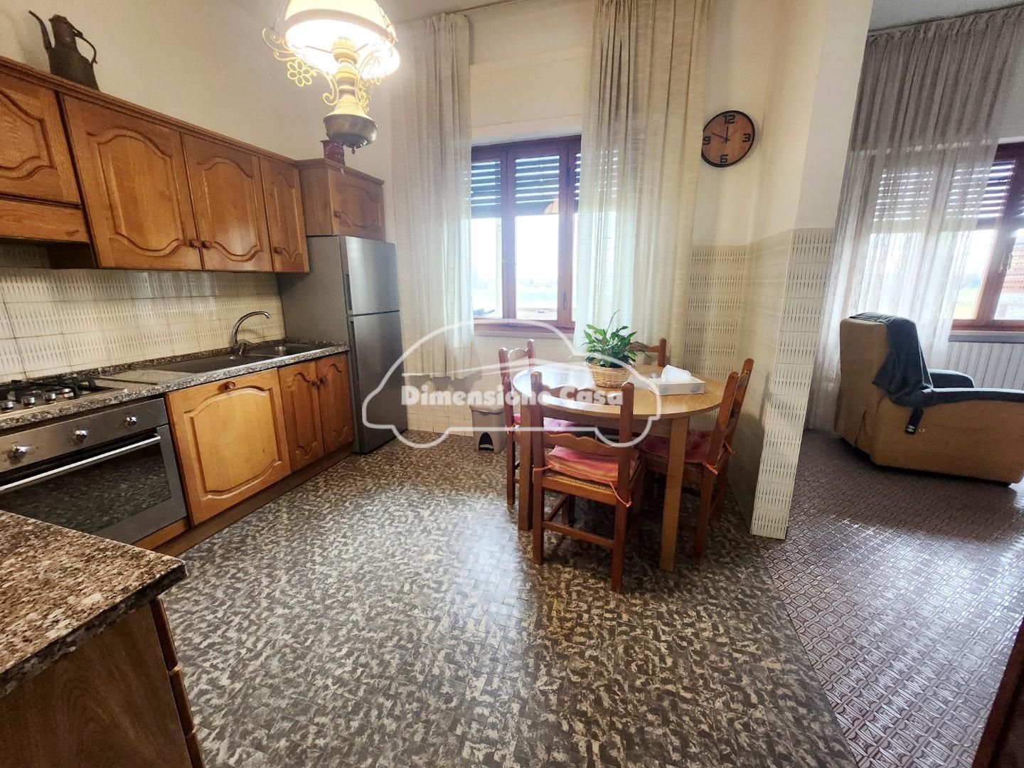 Gli interni, ampi e ben distribuiti su un unico livello, si compongono di ingresso, bel soggiorno con terrazzo, spaziosa cucina-tinello con balcone verandato, tre camere matrimoniali e bagno.