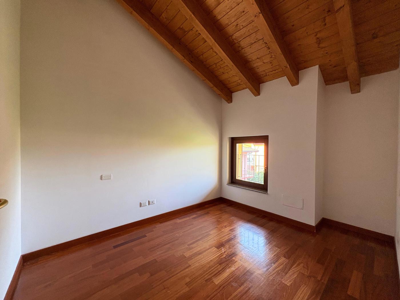 La zona notte, impreziosita dalle travi a vista, ospita tre camere da letto e un secondo bagno.
