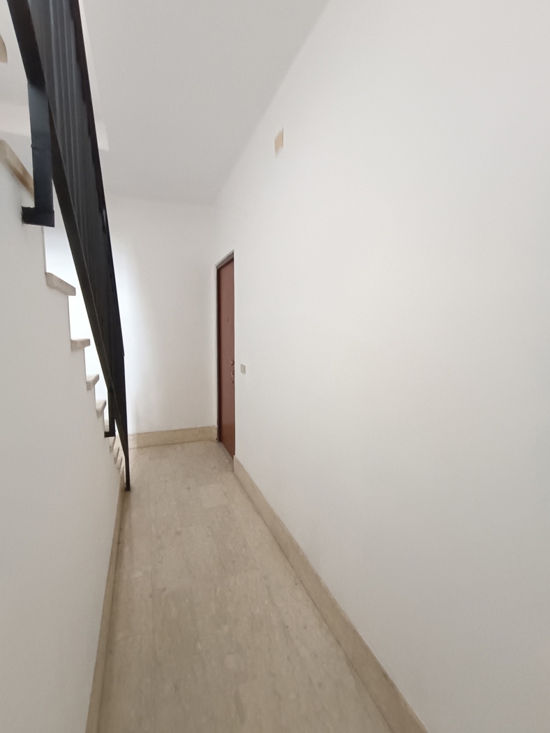 Attraverso il portoncino principale si ha accesso al pianerottolo, dove troviamo un comodo ripostiglio nel sottoscala e a destra la porta blindata del primo appartamento cos suddiviso: ampio soggiorno e cucina abitabile, entrambi gli ambienti serviti dal balcone, corridoio che separa la zona giorno dalla zona notte composta da due camere e sempre nel corridoio, unaltra porta che conduce al giardino di propriet sul retro, dove troviamo lingresso secondario.