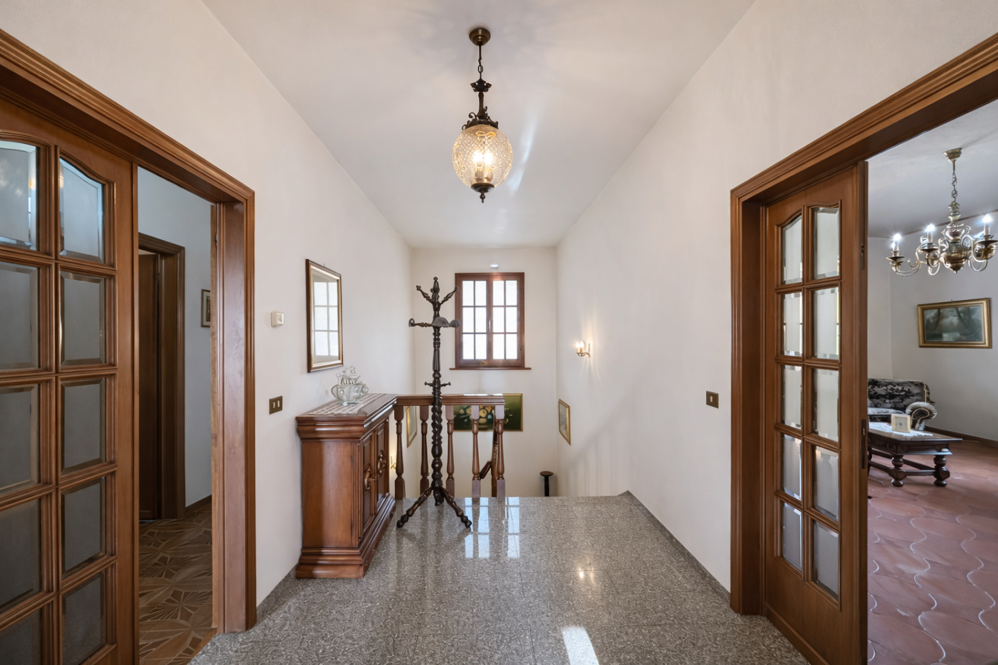 Piano Primo ed ultimo (raggiungibile tramite scala interna): ampio disimpegno zona giorno, luminoso soggiorno, sala da pranzo, cucina abitabile, lavanderia; disimpegno notte, due camere matrimoniali, doppi servizi; completano la proprietà, un locale sottotetto e due terrazze.