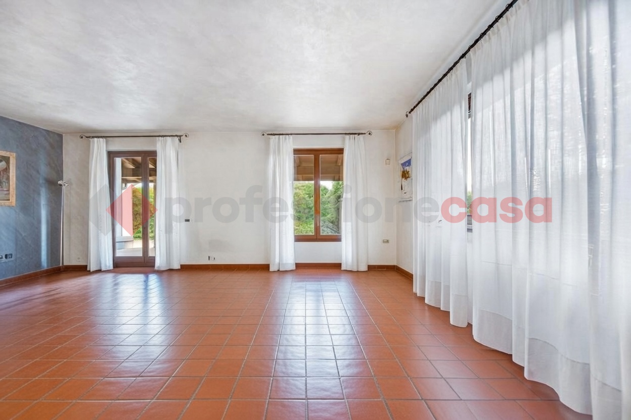 L'immobile costituito da due appartamenti: appartamento principale piano terra costituito da 3 camere, 3 servizi, studio, ripostigli, cucina abitabile, doppio soggiorno e ampio porticato nella zona giorno, con ulteriore locale mansarda di 55mq rifinito con predisposizione bagno oltre locali sottotetto, con la possibilit di creare il terzo appartamento dato l'ingresso indipendente.